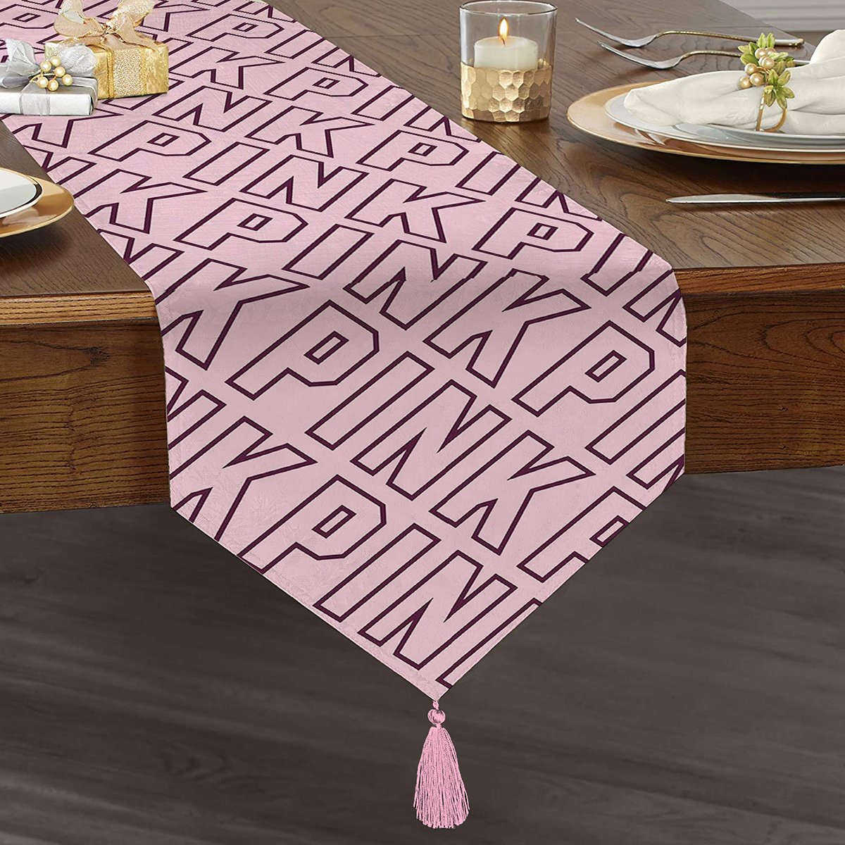Açık Pempe Pink Yazılı Modern Dekoratif Püsküllü Şönil Üçgen Runner