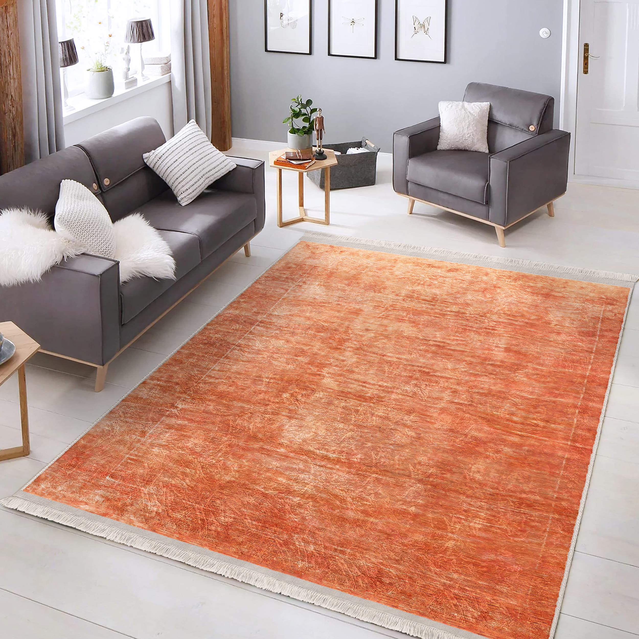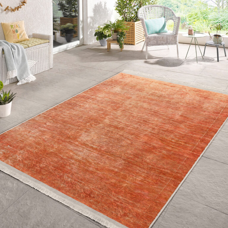 Açık Turuncu Zemin Üzerinde Modern Doku Motifli Şık Salon Halısı – Yıkanabilir Kaymaz Tabanlı