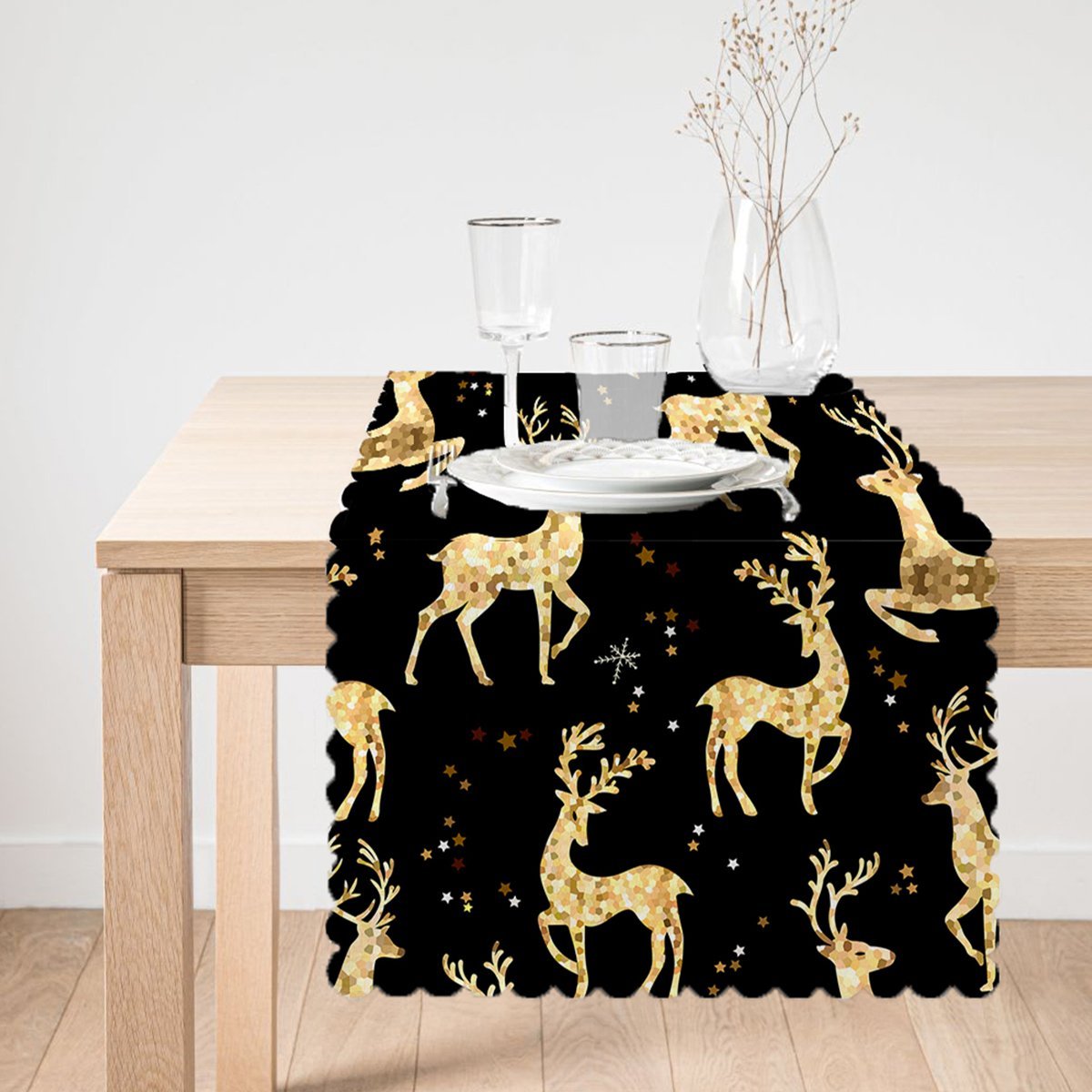 Altın Detaylı Geyikler Desenli Modern Özel Tasarım Runner