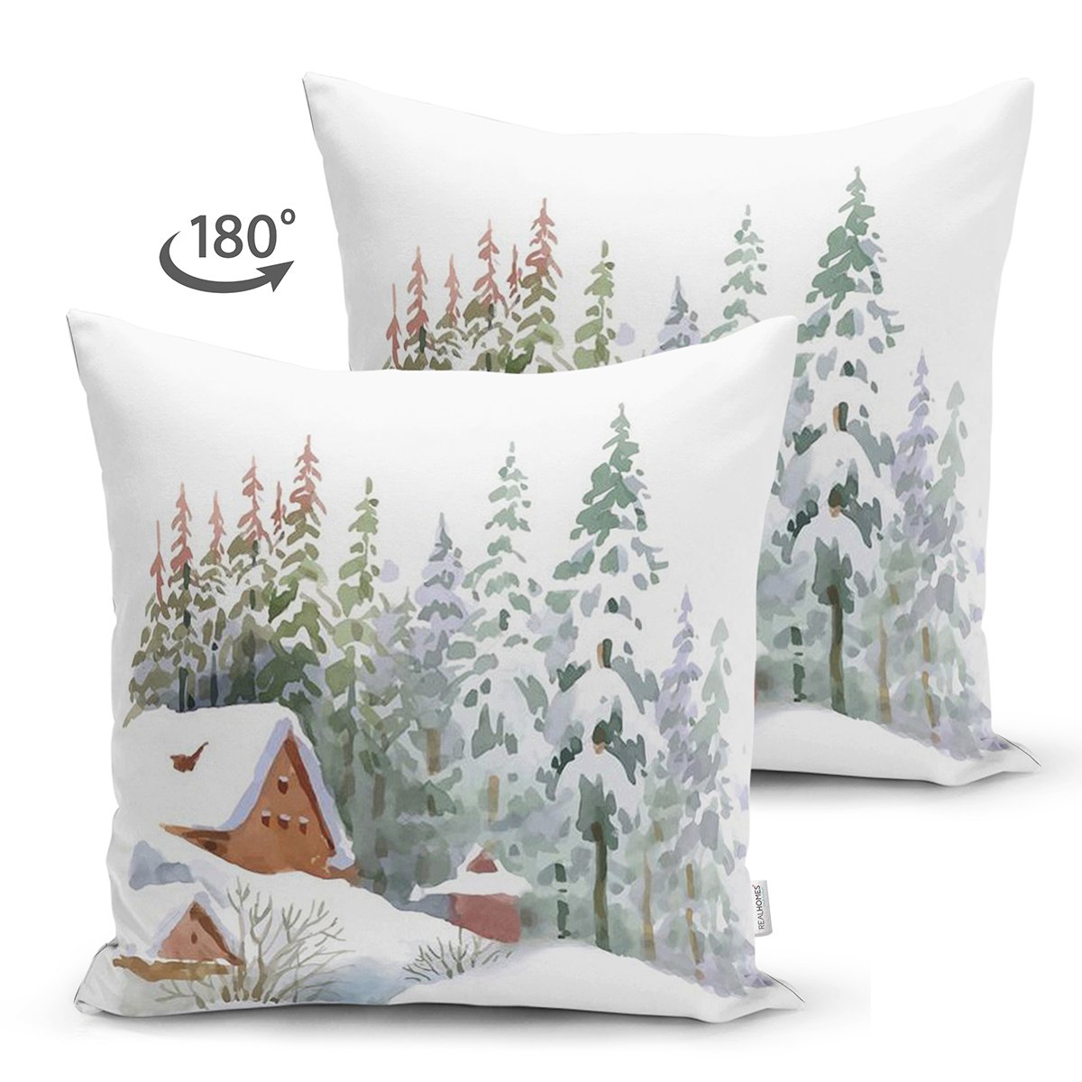 Bağ Evi Tasarımlı Kış Temalı Dijital Baskılı Dekoratif Süet Yastık Kırlent Kılıfı