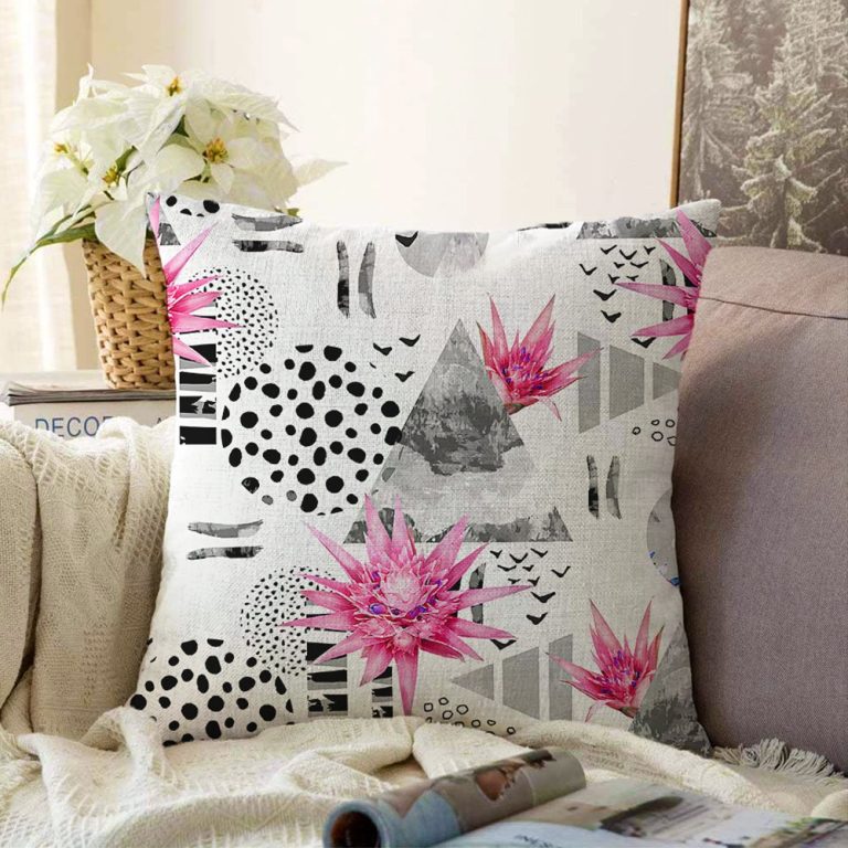 Bal Peteği Temalı Nilüfer Çiçeği Motifli Dekoratif Raşel Kırlent Kılıfı