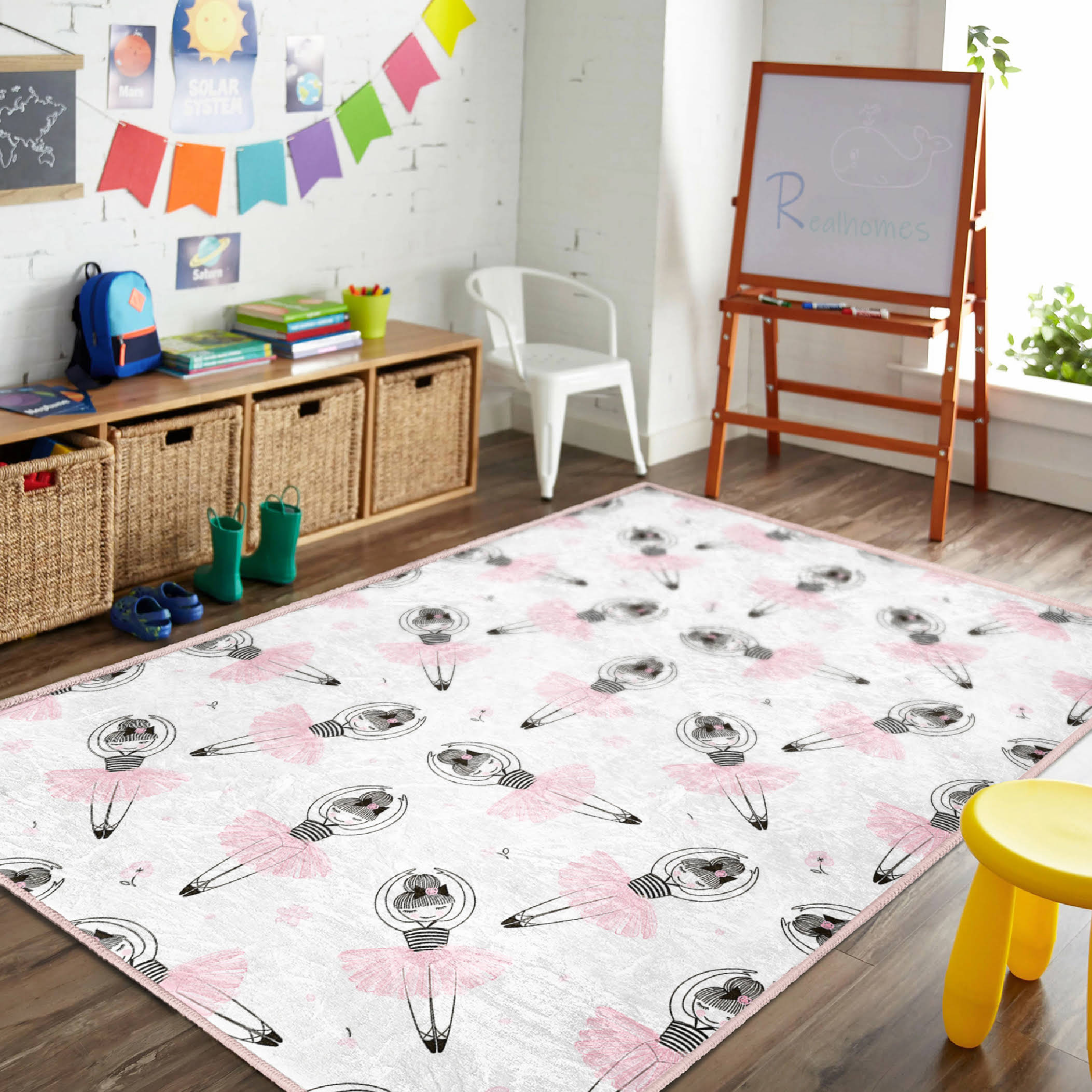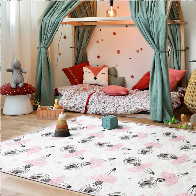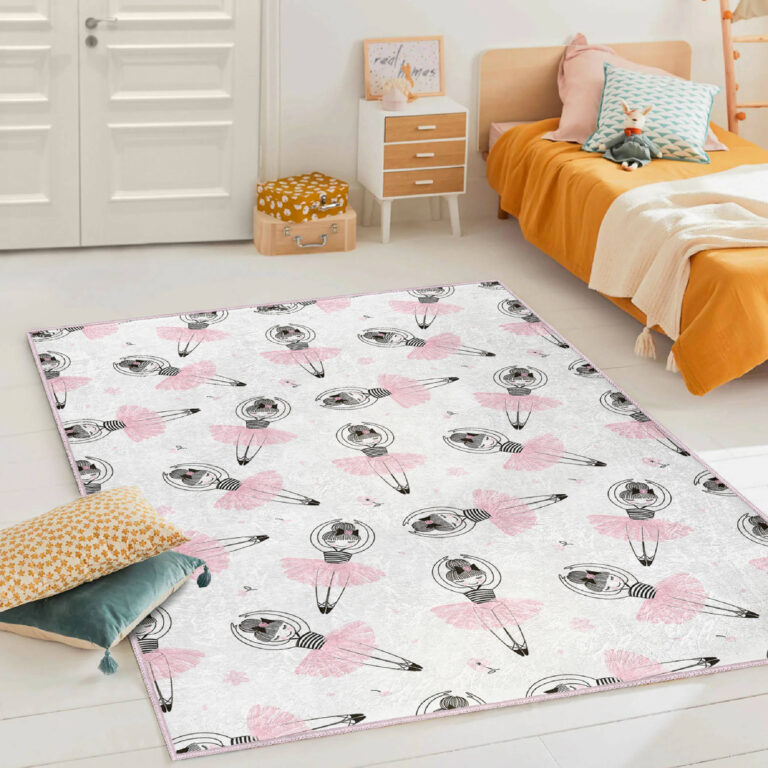 Balet Desenli Renkli Çocuk Halısı – Kaymaz Taban ve Yıkanabilir Özellikleriyle Çocuk Odası İçin İdeal