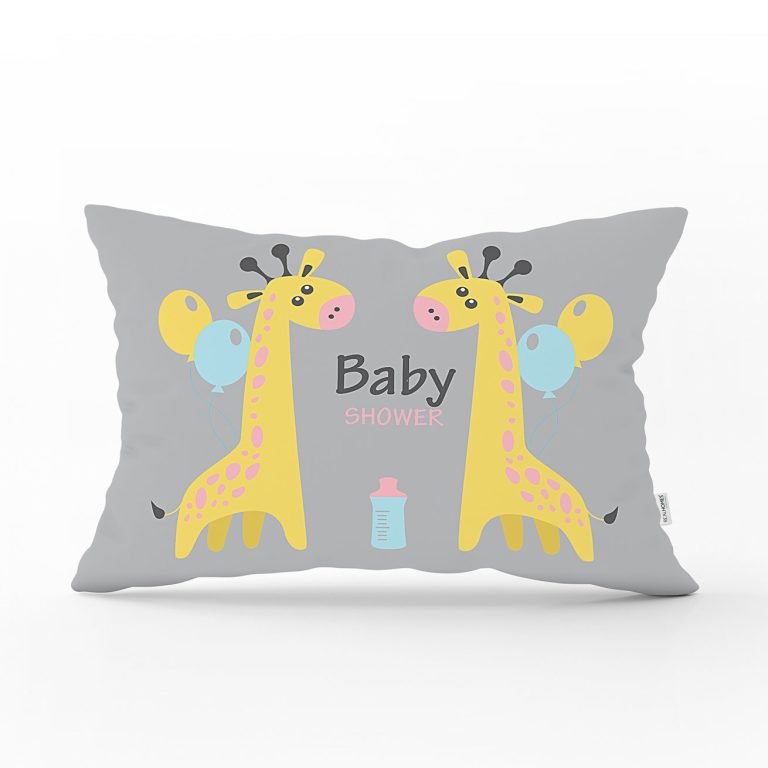 Balon ve Zürafa Desenli Özel Tasarım Bebek Odası Dikdörtgen Yastık Kılıfı
