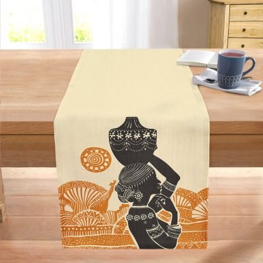 Başında Vazo Taşıyan Etnik Afrika Desenli Modern Dikişli Şönil Runner