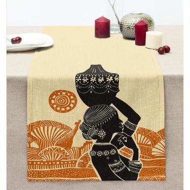 Başında Vazo Taşıyan Etnik Afrika Desenli Modern Dikişli Şönil Runner