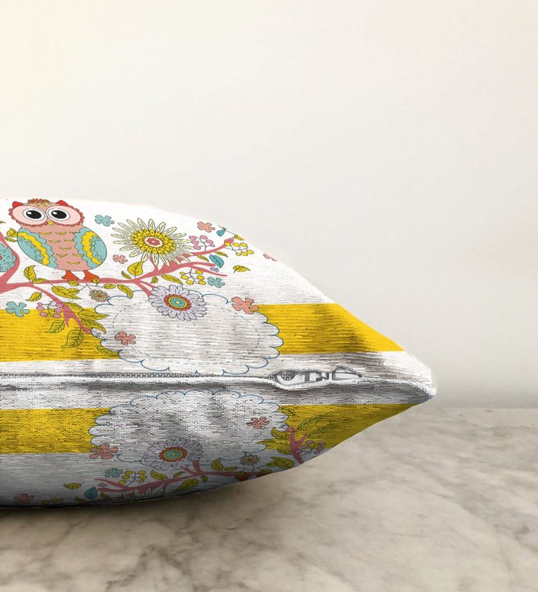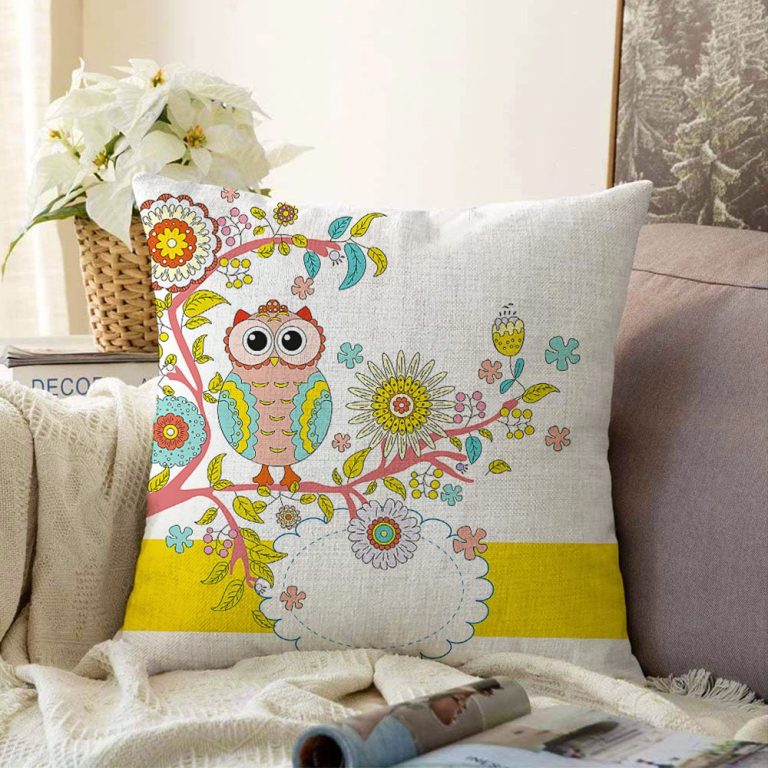 Baykuş Desen Dijital Baskılı Dekoratif Raşel Yastık Kırlent Kılıfı
