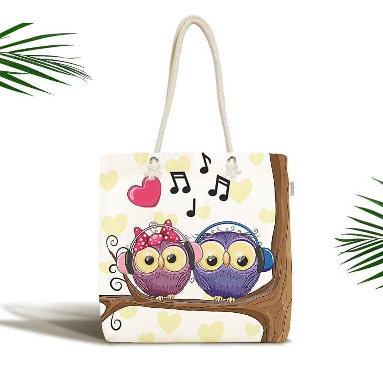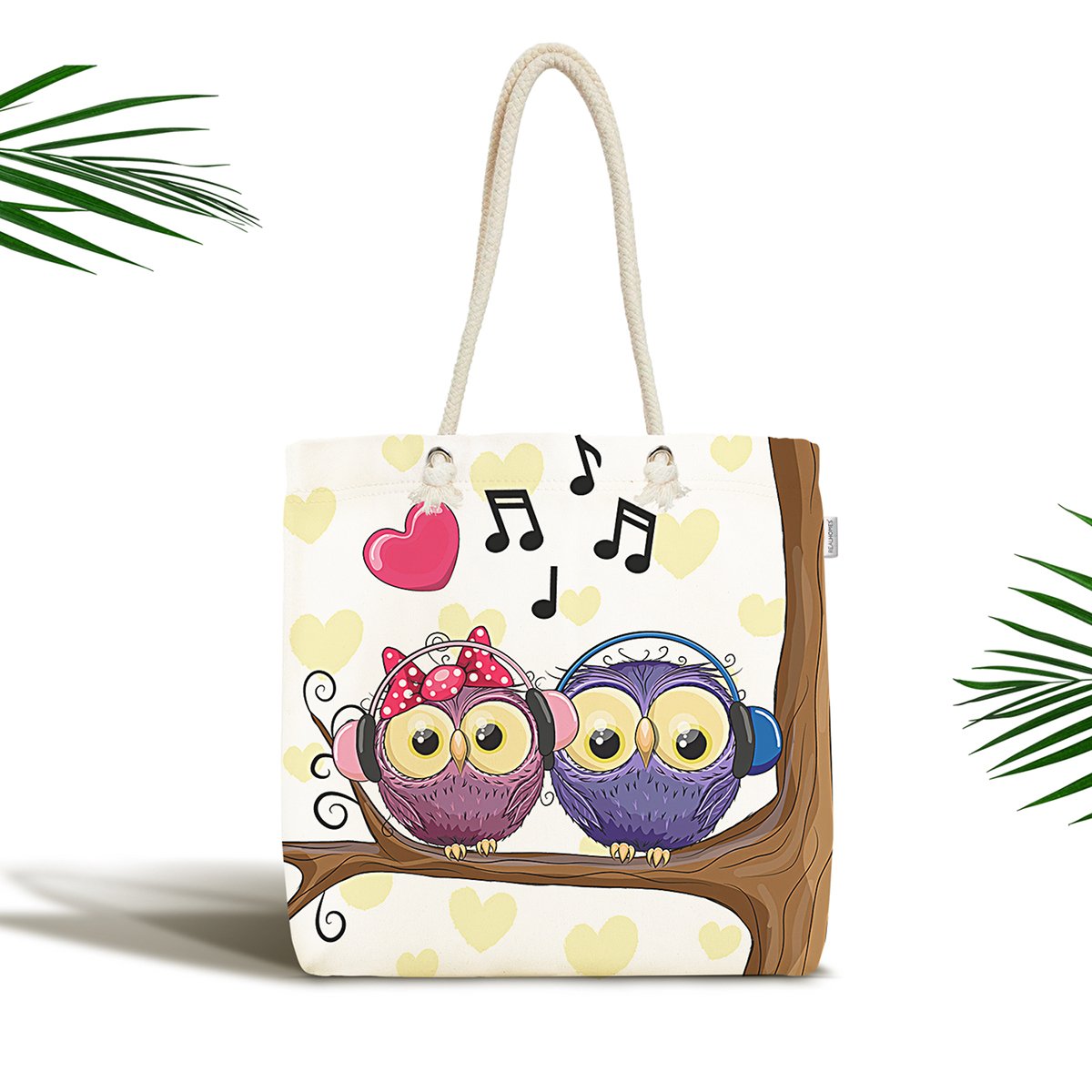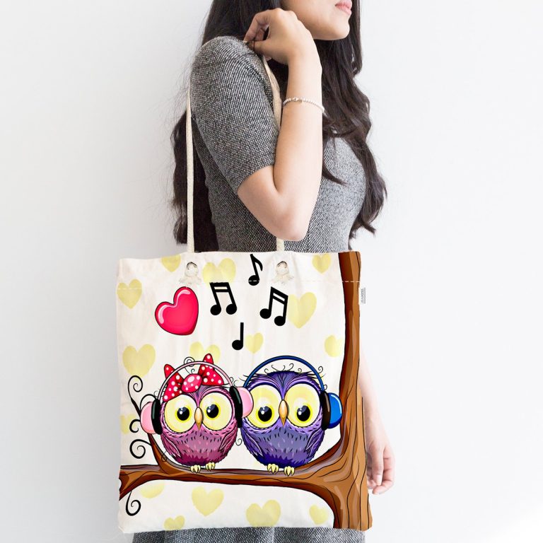 Baykuş Desenli Dijital Baskılı Kumaş Çanta