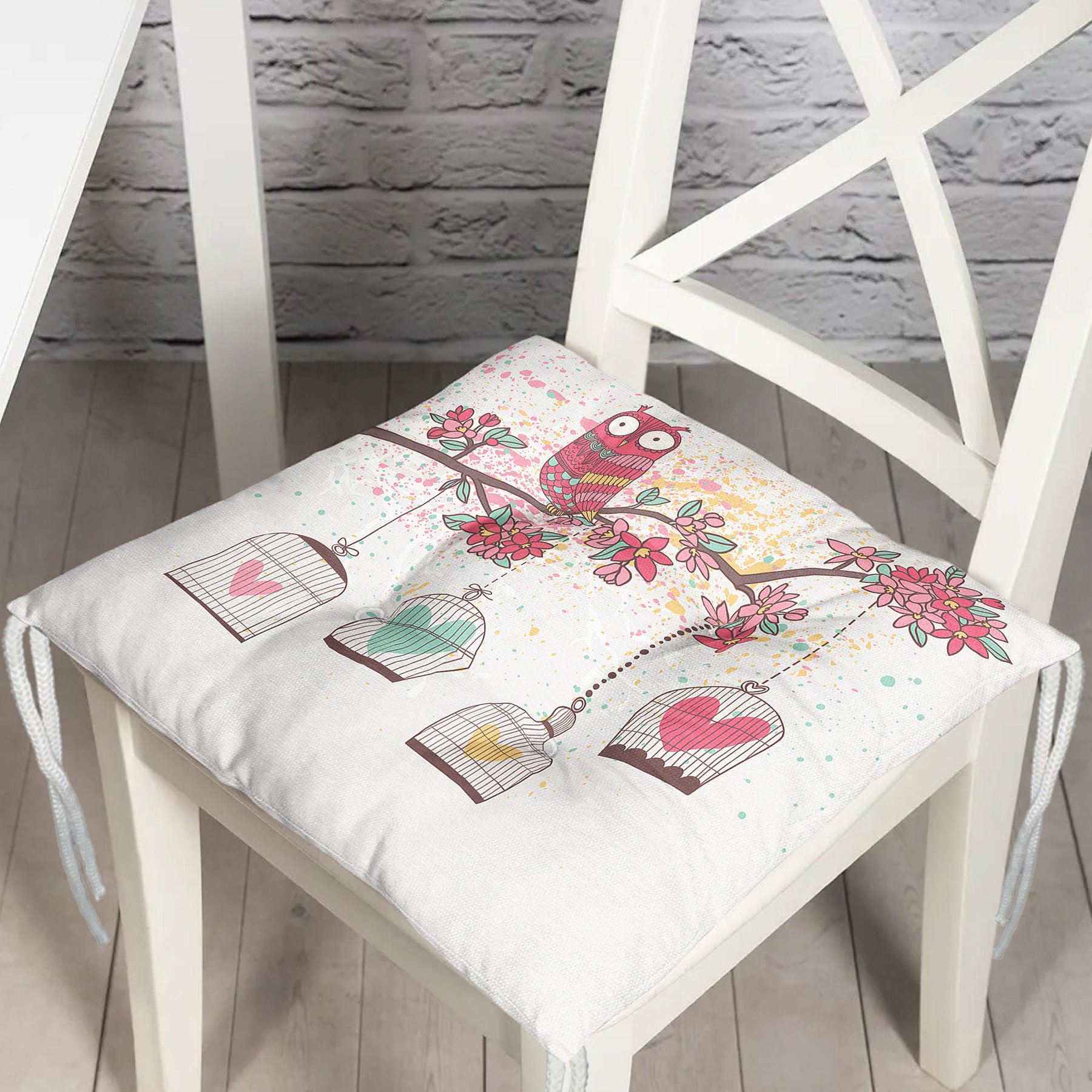 Baykuş Desenli Dijital Baskılı Pofidik Kare Sandalye Minderi