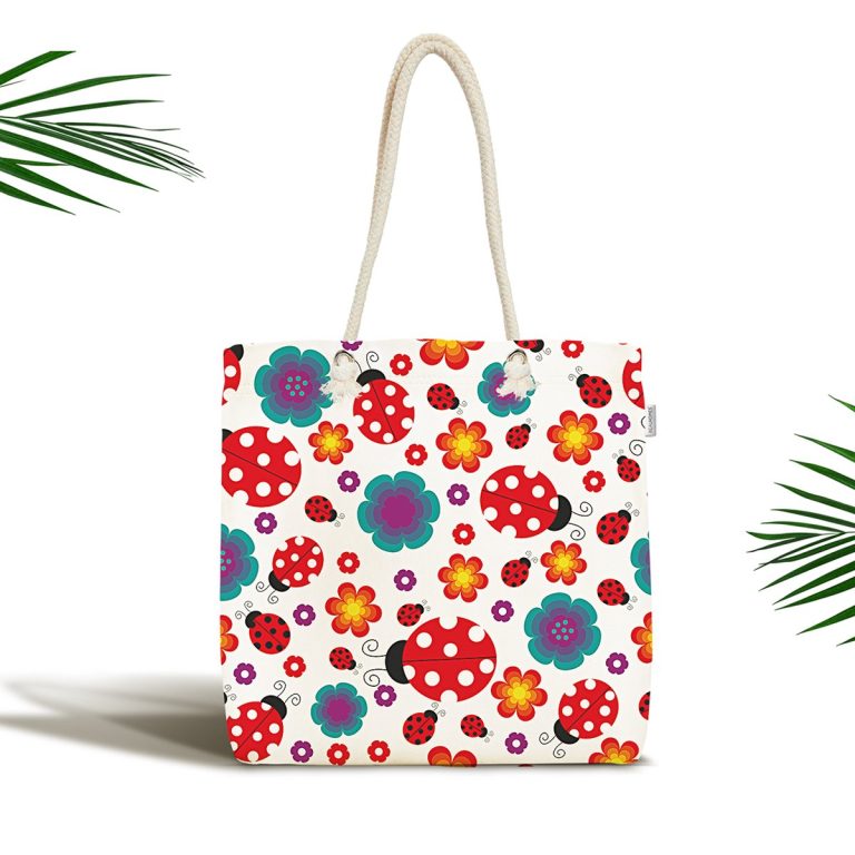 Bebek Çantası – Beyaz Zeminde Uğurböceği Dijital Baskılı Modern Kumaş Çanta