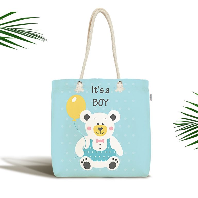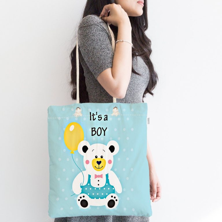 Bebek Çantası – Mavi Zeminde Ayıcık Desenli Dijtal Baskılı Kumaş Çanta