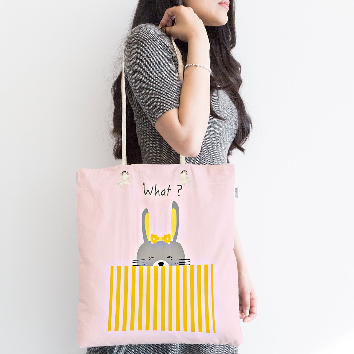 Bebek Çantası – Pembe Zeminde Gri Sarı Ayıcık Motifli Kumaş Çanta