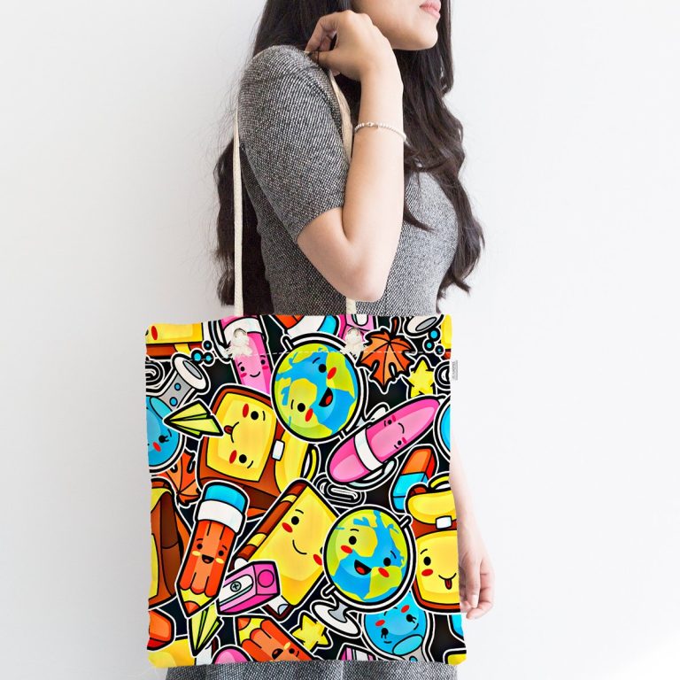 Bebek Çantası – Renkli Eşyalar Dijital Baskılı Modern Kumaş Çanta