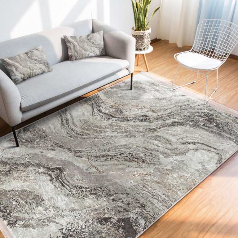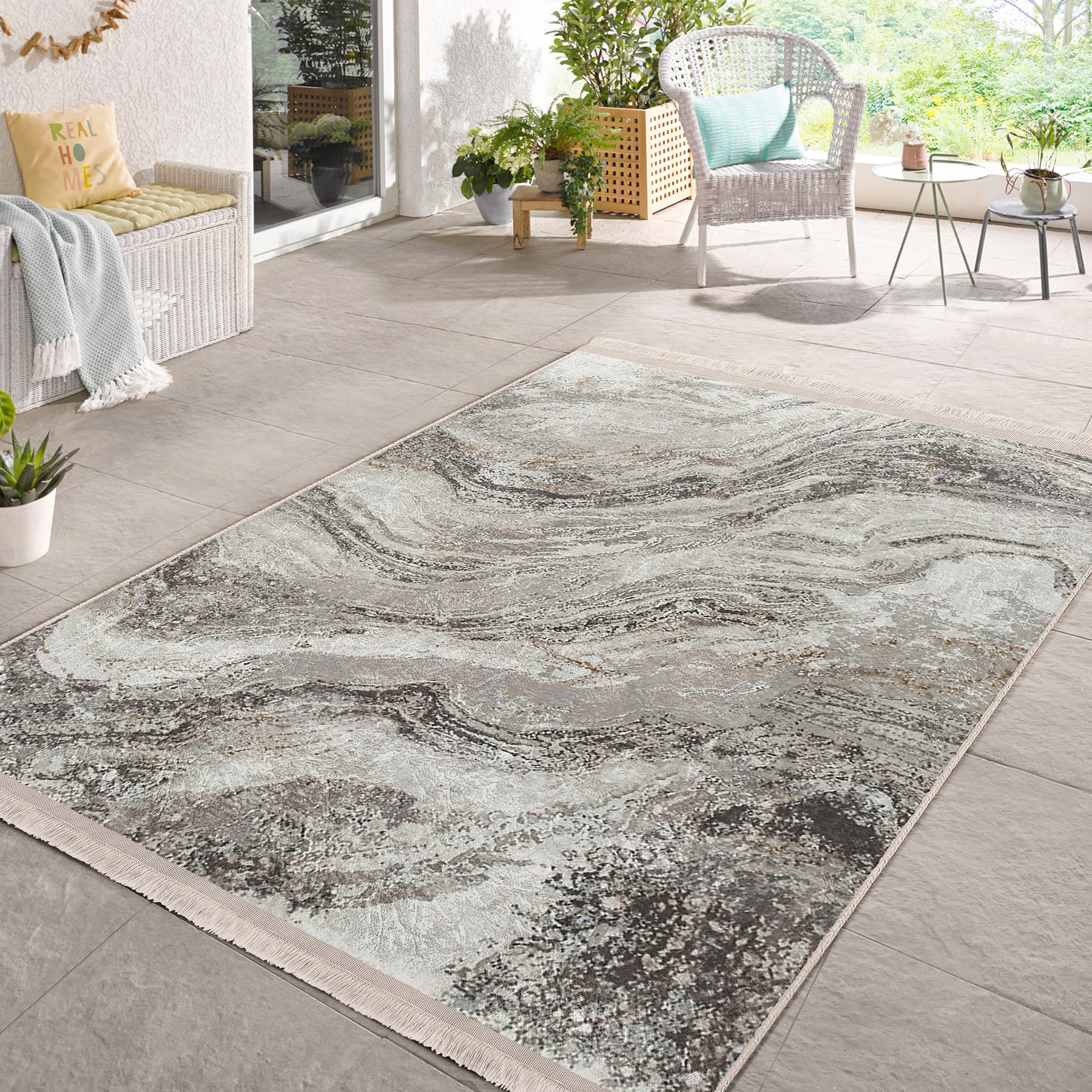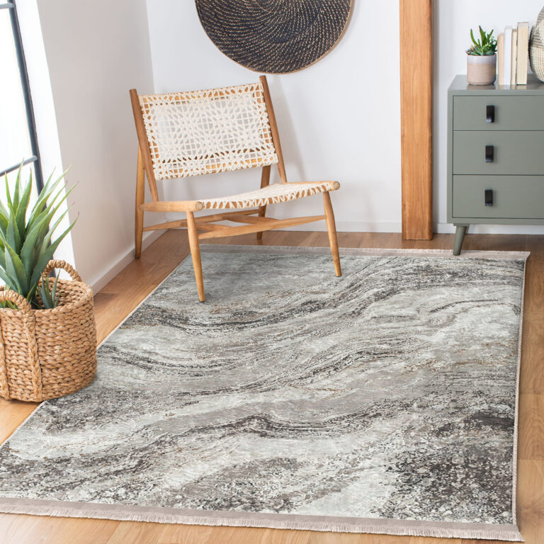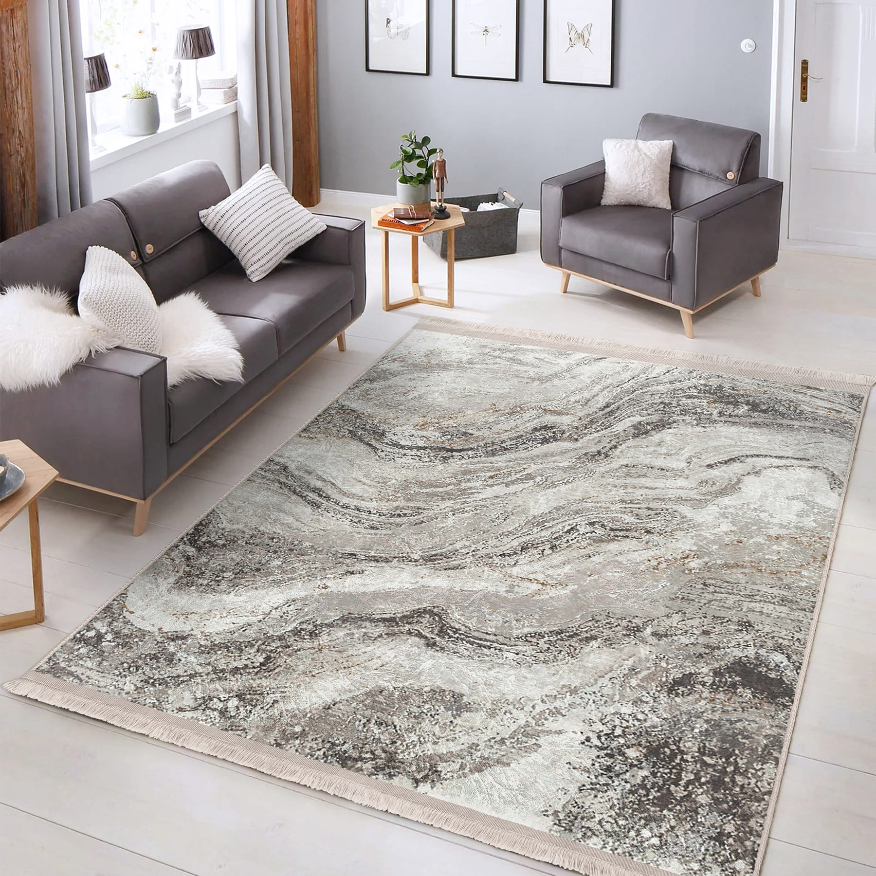 Bej – Krem Zeminde Eskitme Motifli Mermer Desenli Eskitme Motifli Klasik Salon & Oturma Odası Yatak Odası Dijital Baskılı Makinede Yıkanabilir Kaymaz Taban Saçaklı Halı