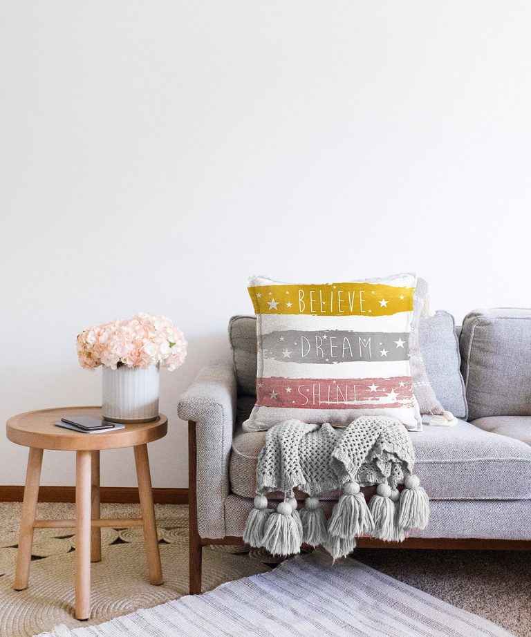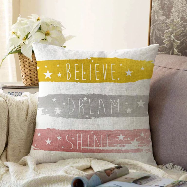 Believe Dream Shine Çizimli Modern Dijital Baskılı Raşel Yastık Kılıfı