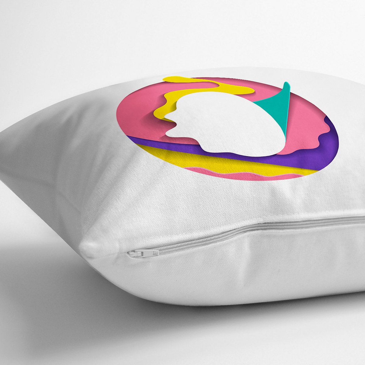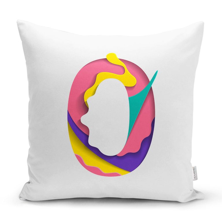 Beyaz Zemin Renkli 0 Rakamlı Özel Tasarım Dijital Baskılı Yastık Kırlent Kılıfı
