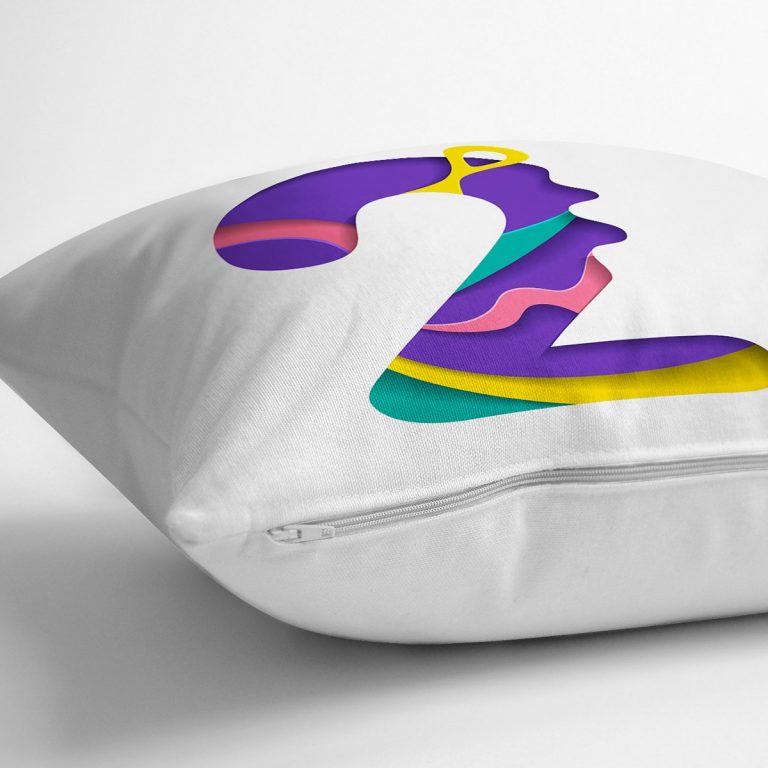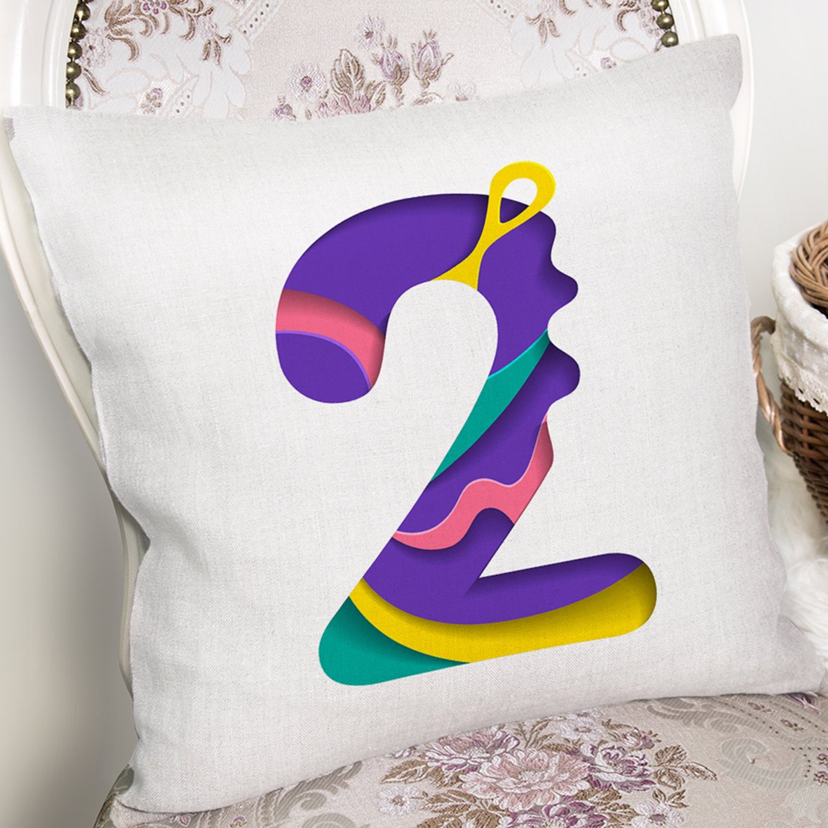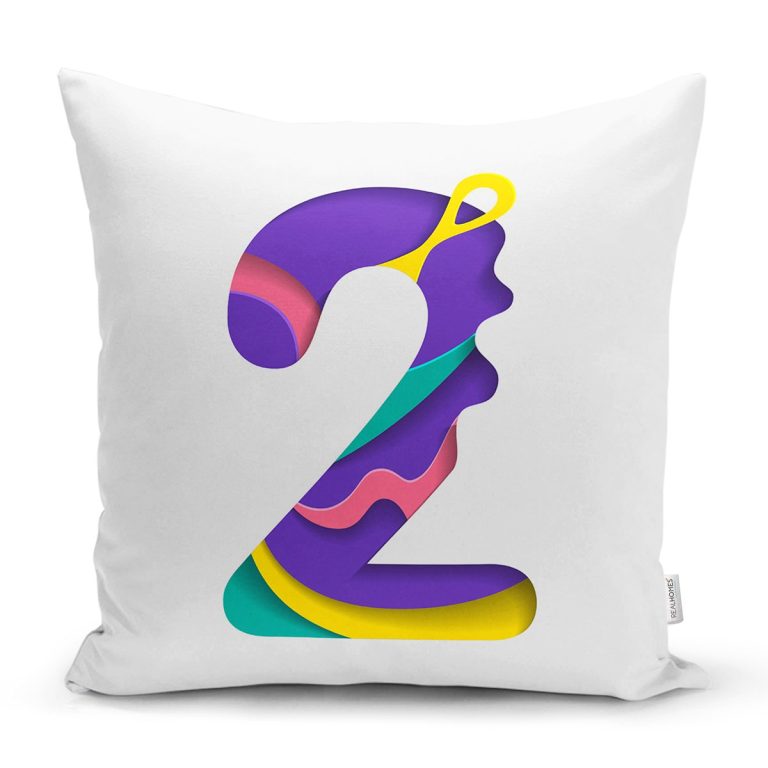 Beyaz Zemin Renkli 2 Rakamlı Özel Tasarım Dijital Baskılı Yastık Kırlent Kılıfı