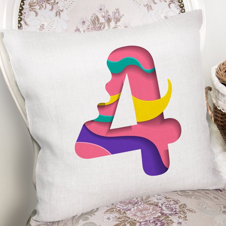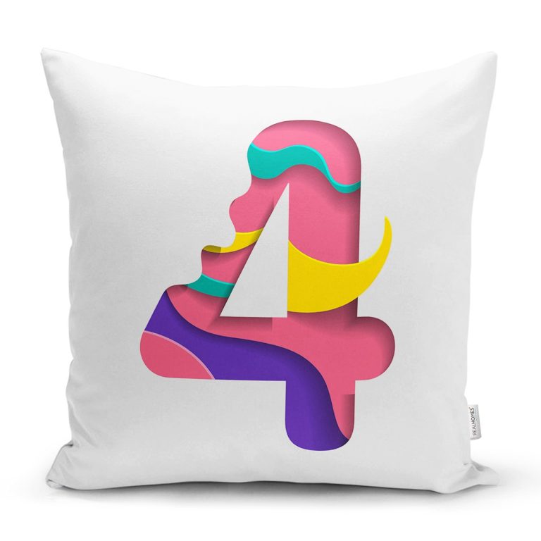 Beyaz Zemin Renkli 4 Rakamlı Özel Tasarım Dijital Baskılı Yastık Kırlent Kılıfı