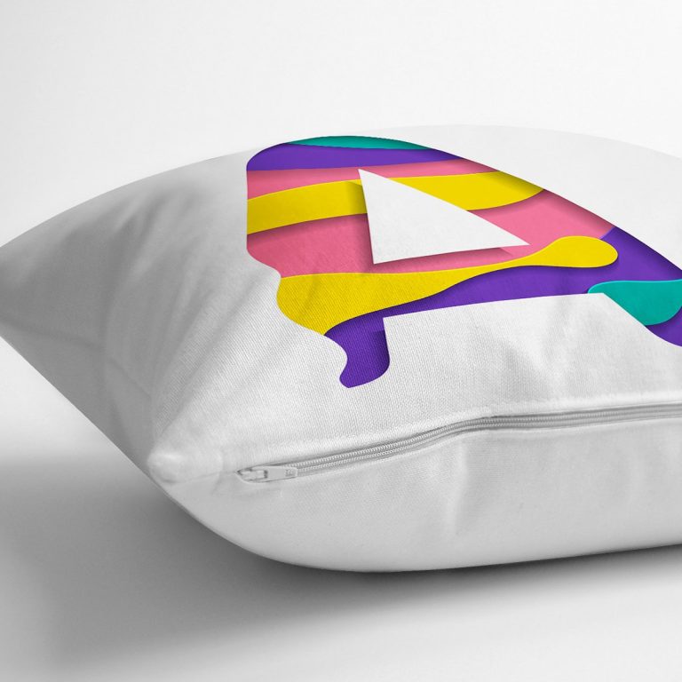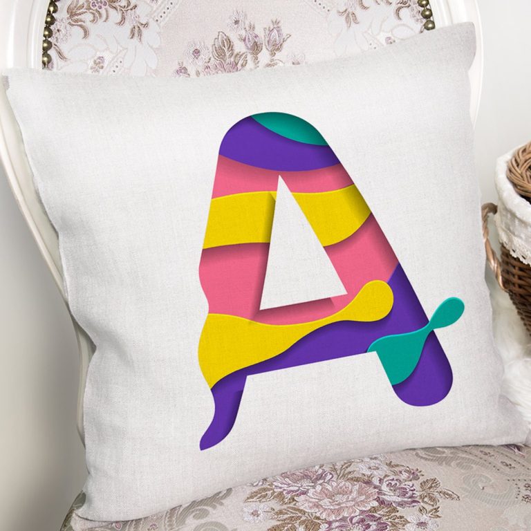 Beyaz Zemin Renkli A Harfli Özel Tasarım Dijital Baskılı Yastık Kırlent Kılıfı