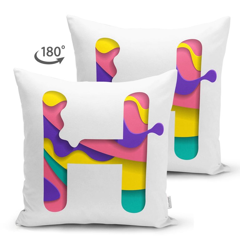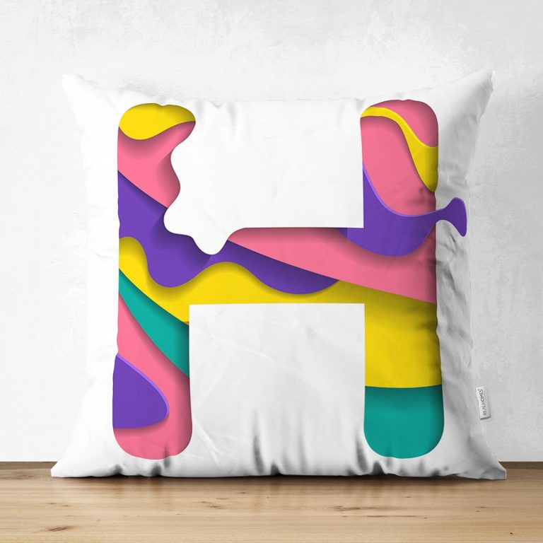 Beyaz Zemin Renkli H Harfli Özel Tasarım Modern Suet Yastık Kırlent Kılıfı