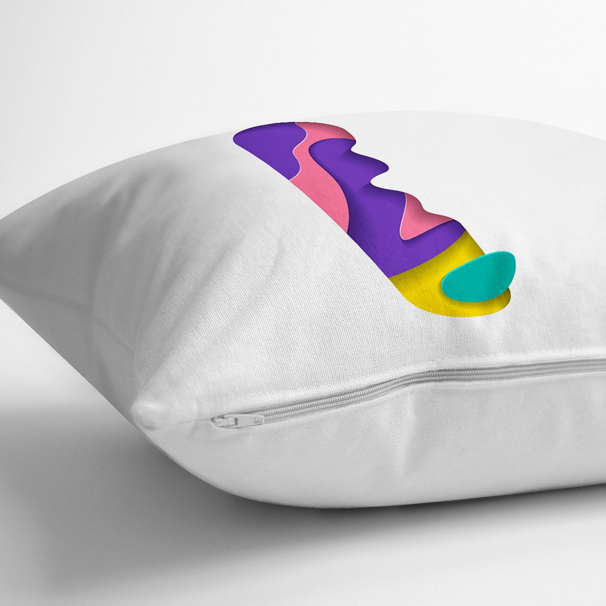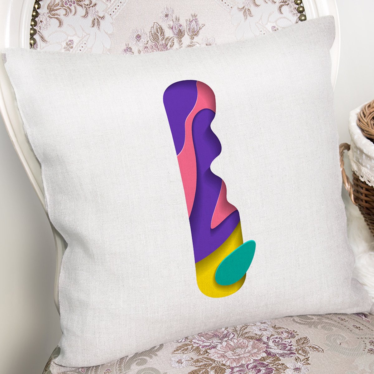 Beyaz Zemin Renkli I Harfli Özel Tasarım Dijital Baskılı Yastık Kırlent Kılıfı