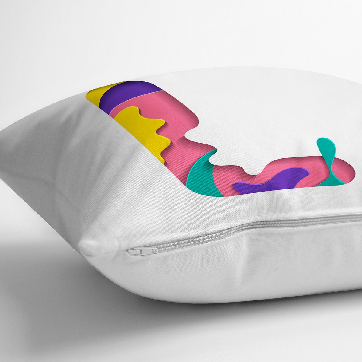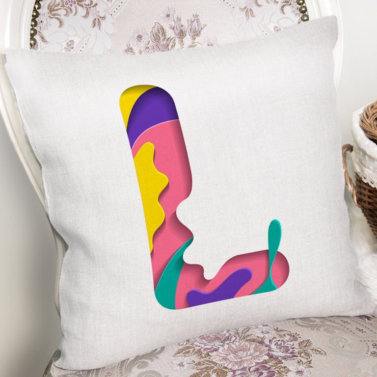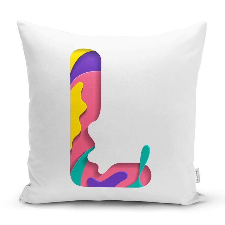 Beyaz Zemin Renkli L Harfli Özel Tasarım Dijital Baskılı Yastık Kırlent Kılıfı