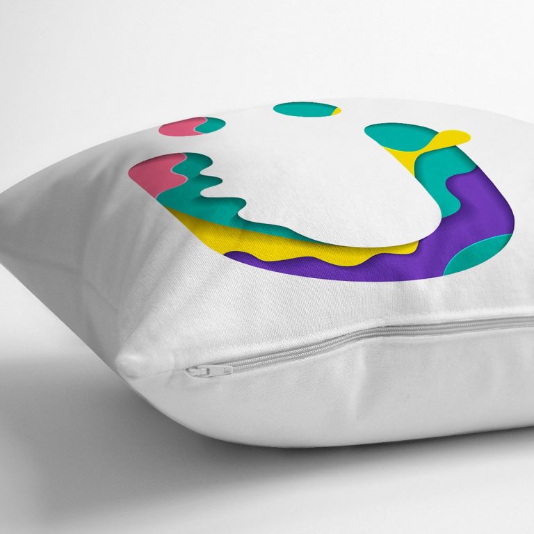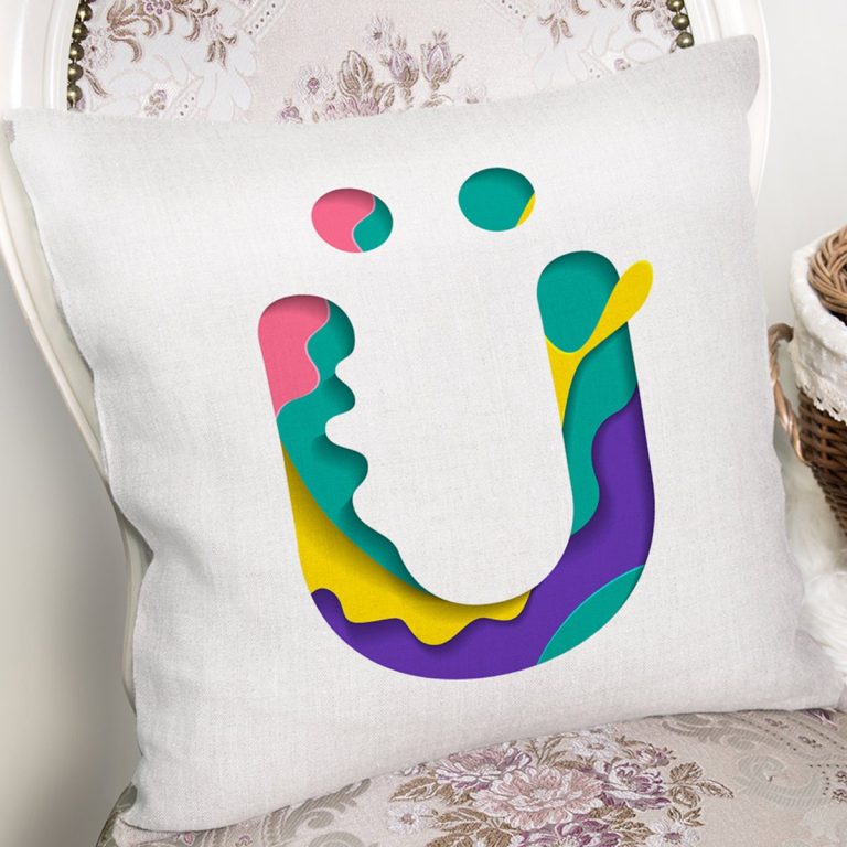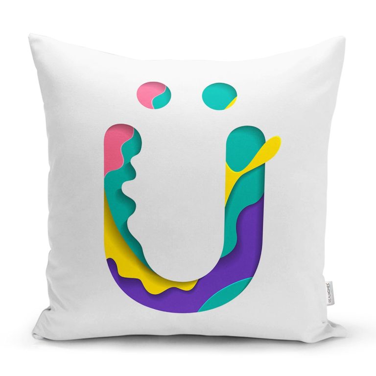 Beyaz Zemin Renkli Ü Harfli Özel Tasarım Dijital Baskılı Yastık Kırlent Kılıfı