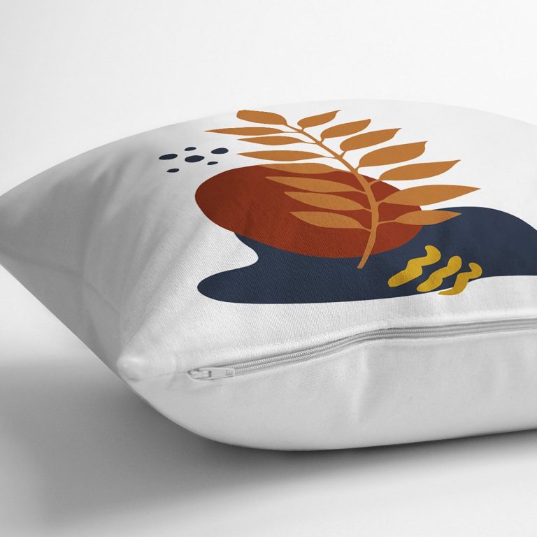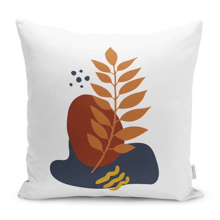 Beyaz Zemin Tekli Tropik Yaprak Çizimli Yastık Kırlent Kılıfı
