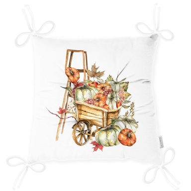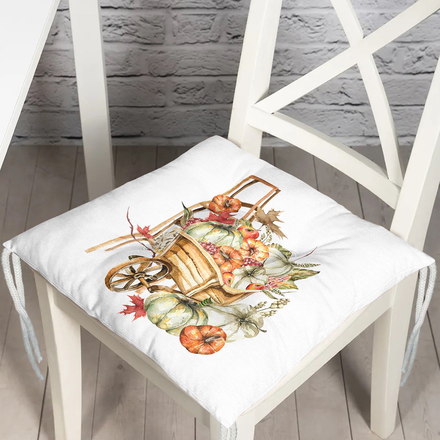 Beyaz Zemin Üzerinde Balkabağı Desenli Dijital Baskılı Modern Pofidik Sandalye Minderi