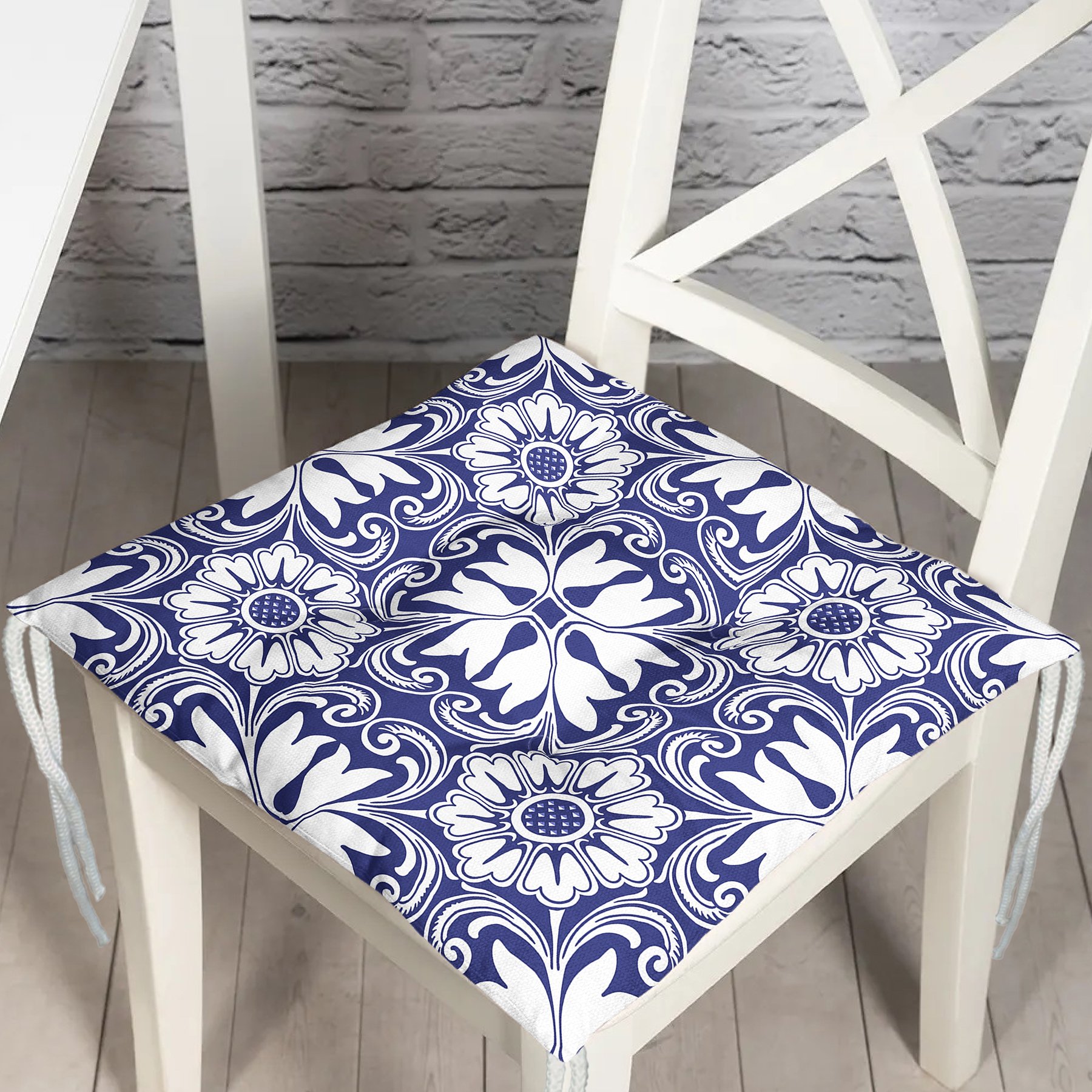 Beyaz Zemin Üzerinde Çini Desenli Dijital Baskılı Modern Pofidik Sandalye Minderi