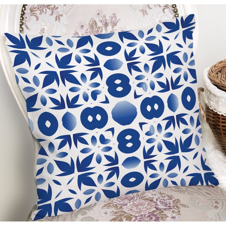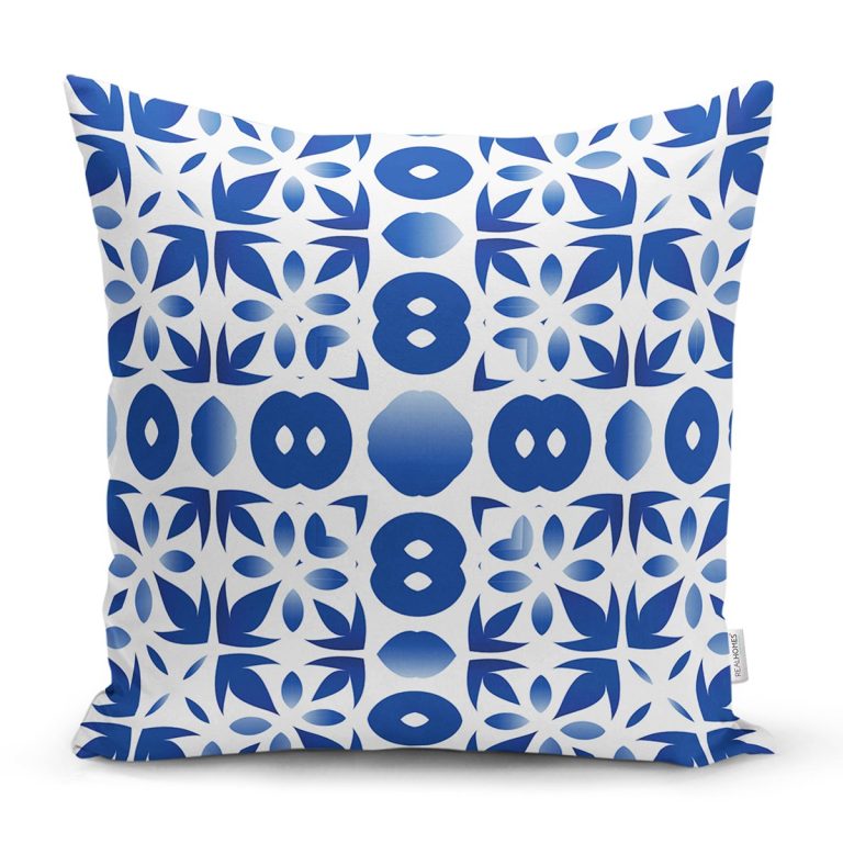 Beyaz Zemin Üzerinde Çini Desenli Dijital Baskılı Modern Yastık Kırlent Kılıfı