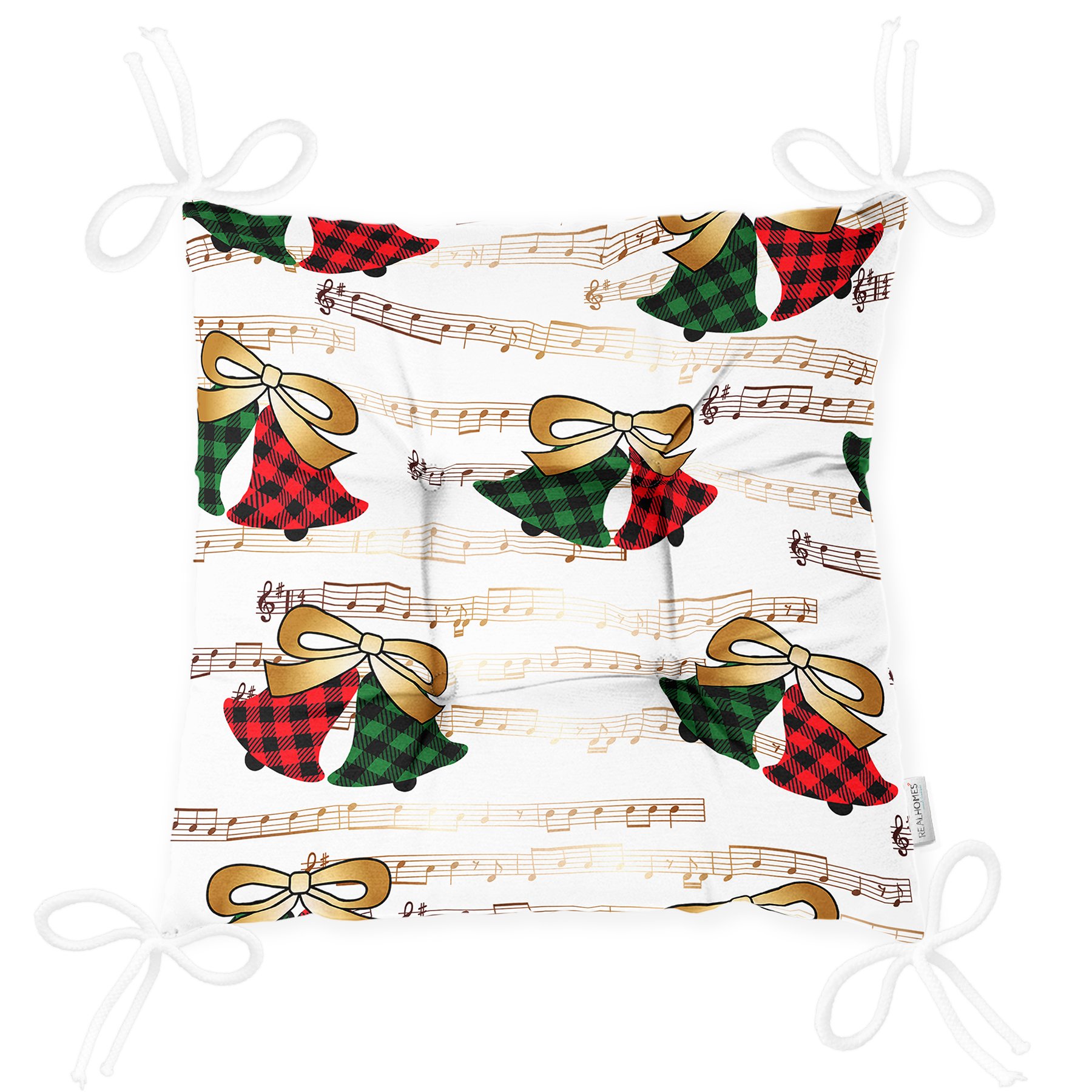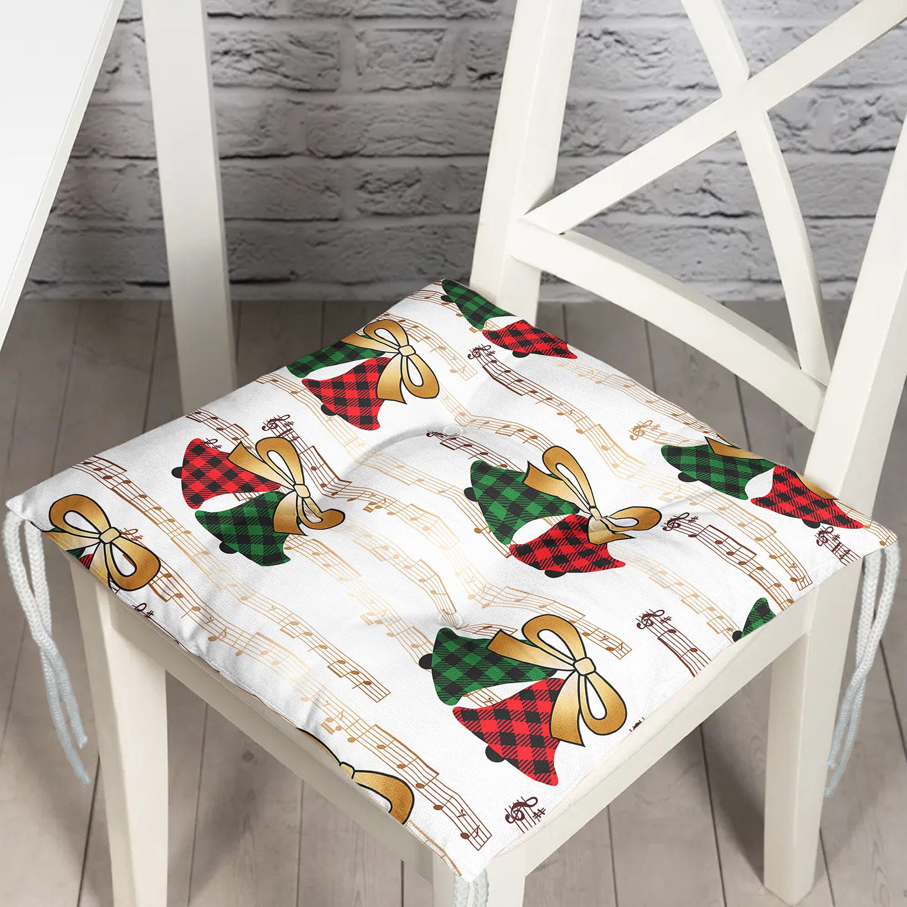 Beyaz Zemin Üzerinde Ekoseli Çan Desenli Dijital Baskılı Modern Pofidik Sandalye Minderi