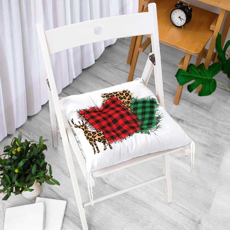 Beyaz Zemin Üzerinde Ekoseli Kumaş Desenli Dijital Baskılı Modern Pofidik Sandalye Minderi