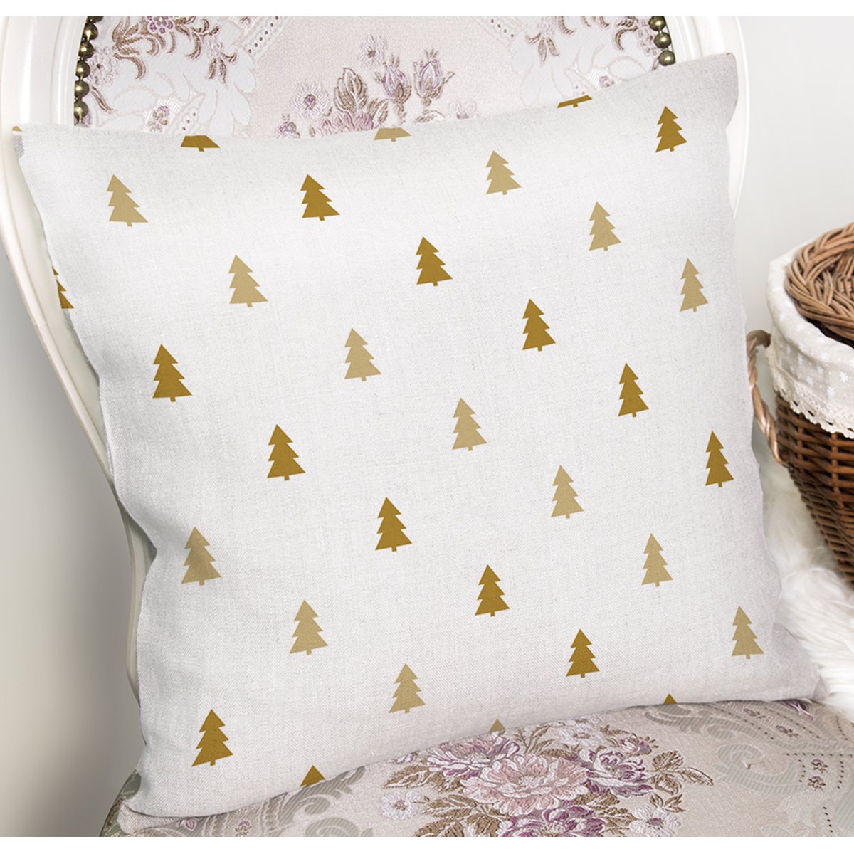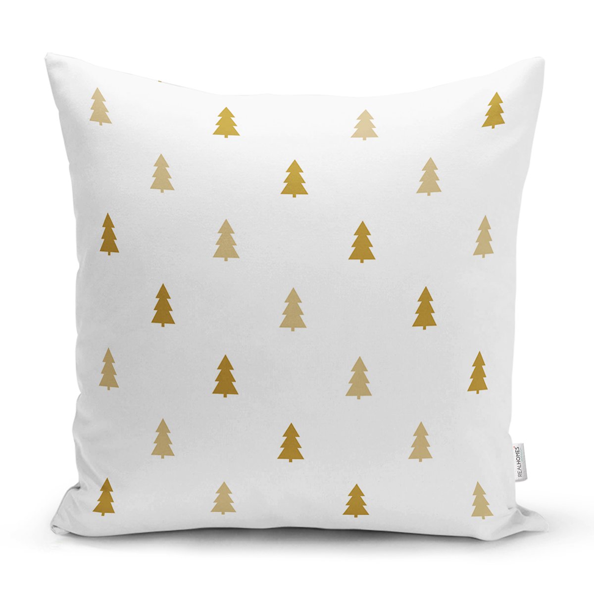 Beyaz Zemin Üzerinde Gold Renkli Çam Ağacı Desenli Modern Yastık Kırlent Kılıfı