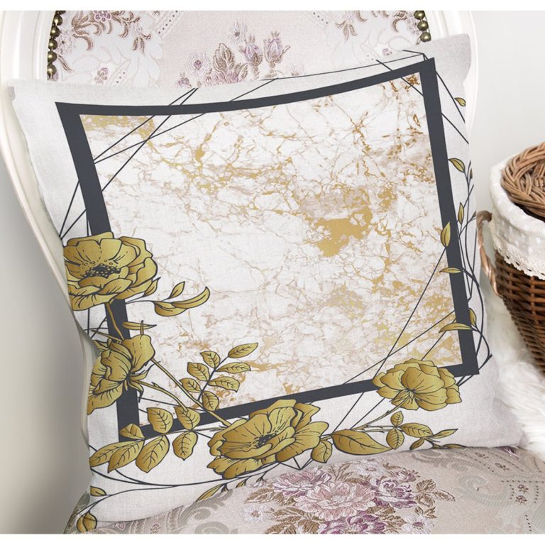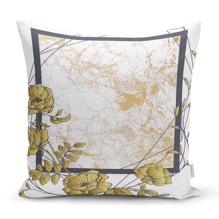 Beyaz Zemin Üzerinde Gold Renkli Gul Yaprakları Modern Yastık Kırlent Kılıfı