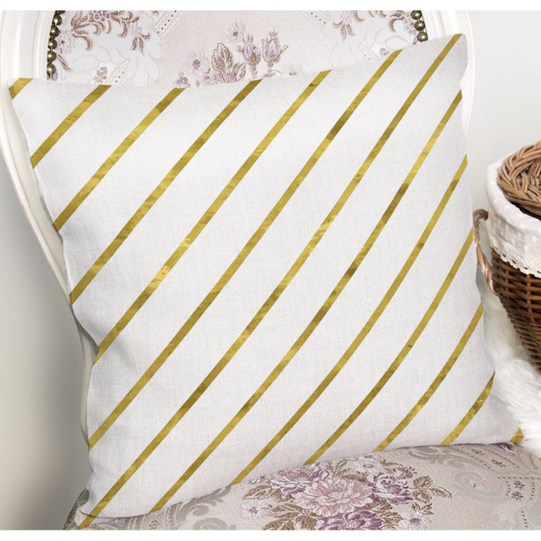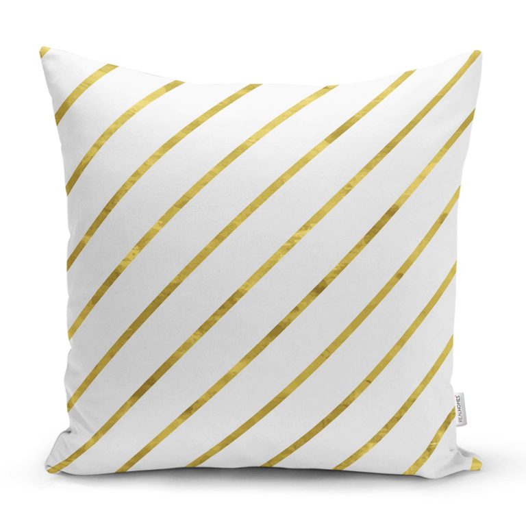Beyaz Zemin Üzerinde Gold Renkli Yatay Çizgili Modern Yastık Kırlent Kılıfı
