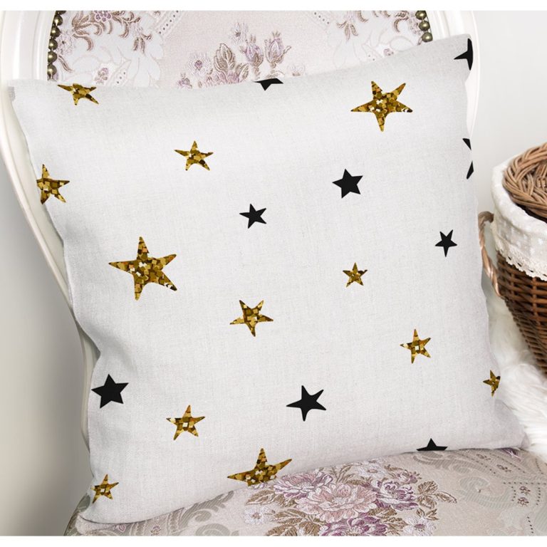 Beyaz Zemin Üzerinde Gold Yıldızlı Dijital Baskılı Modern Yastık Kırlent Kılıfı