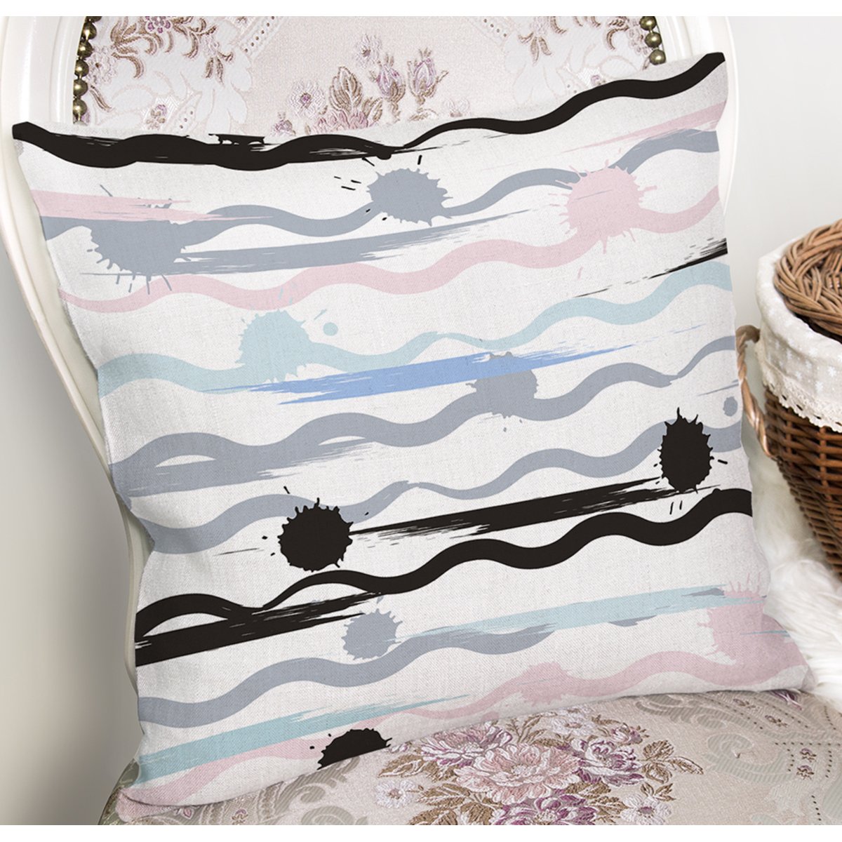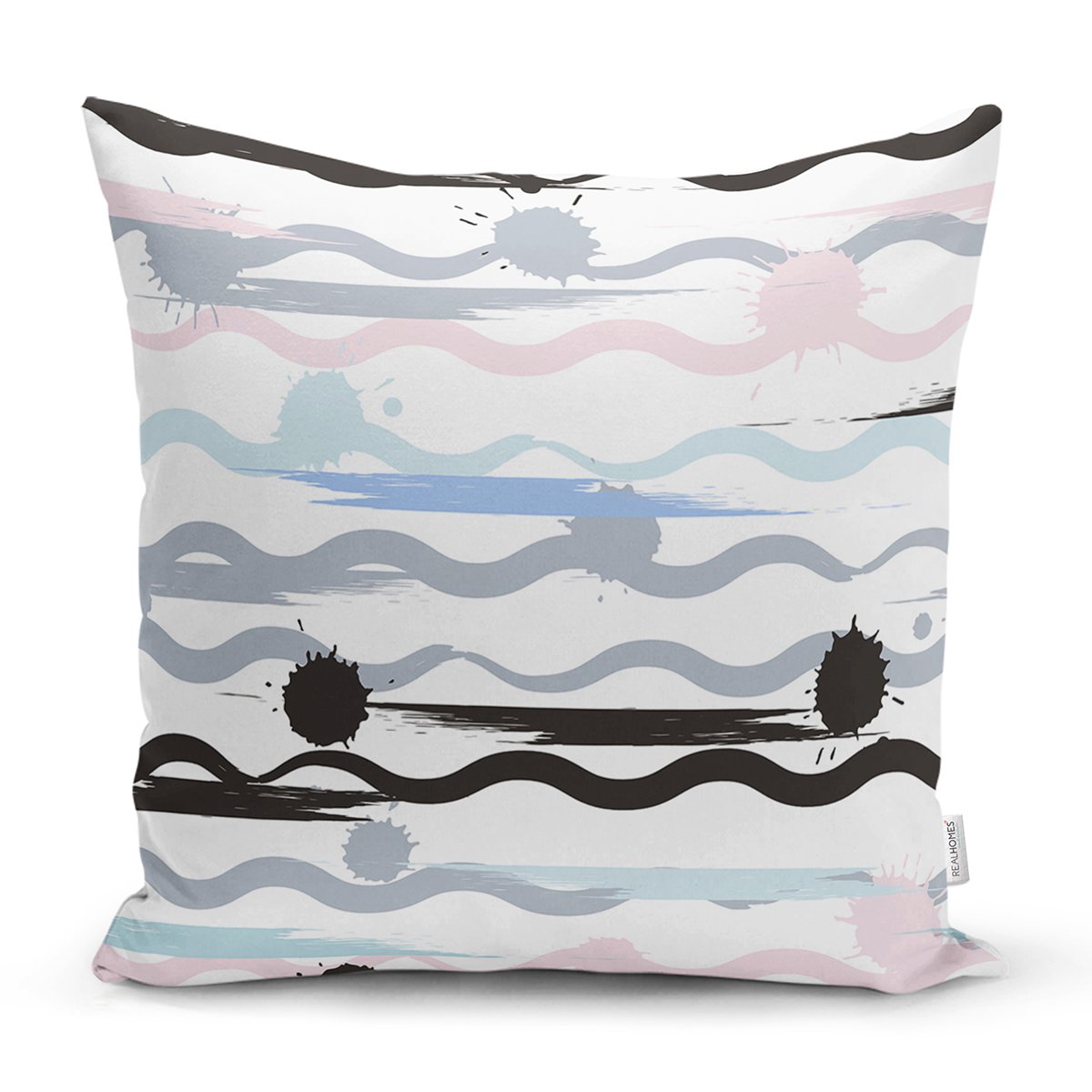 Beyaz Zemin Üzerinde Modern Çizgili Zigzag Desen Modern Yastık Kırlent Kılıfı