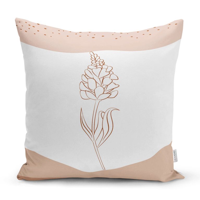 Beyaz Zemin Üzerinde Onedraw Çizimli Gül Desenli Modern Yastık Kırlent Kılıfı