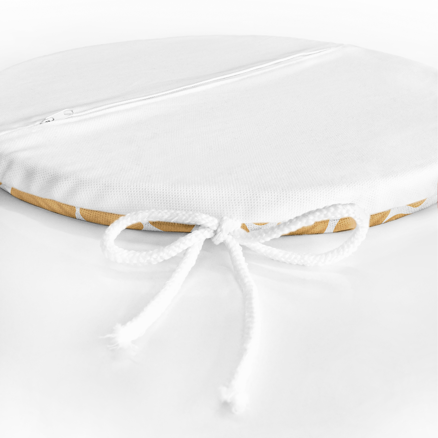Beyaz Zemin Üzerinde Pastel Renkli Geometrik Desenli Dijital Baskılı Modern Yuvarlak Fermuarlı Sandalye Minderi