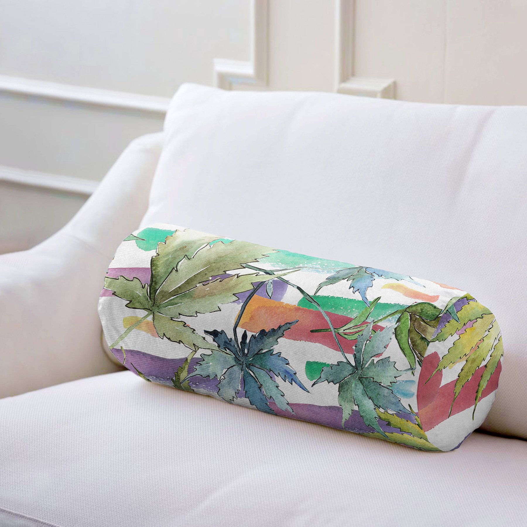 Beyaz Zemin Üzerinde Renkli Çizgili Dijital Baskılı Modern İç Dolgulu Fermuarlı Çok Amaçlı Silindir Yastık Kırlent