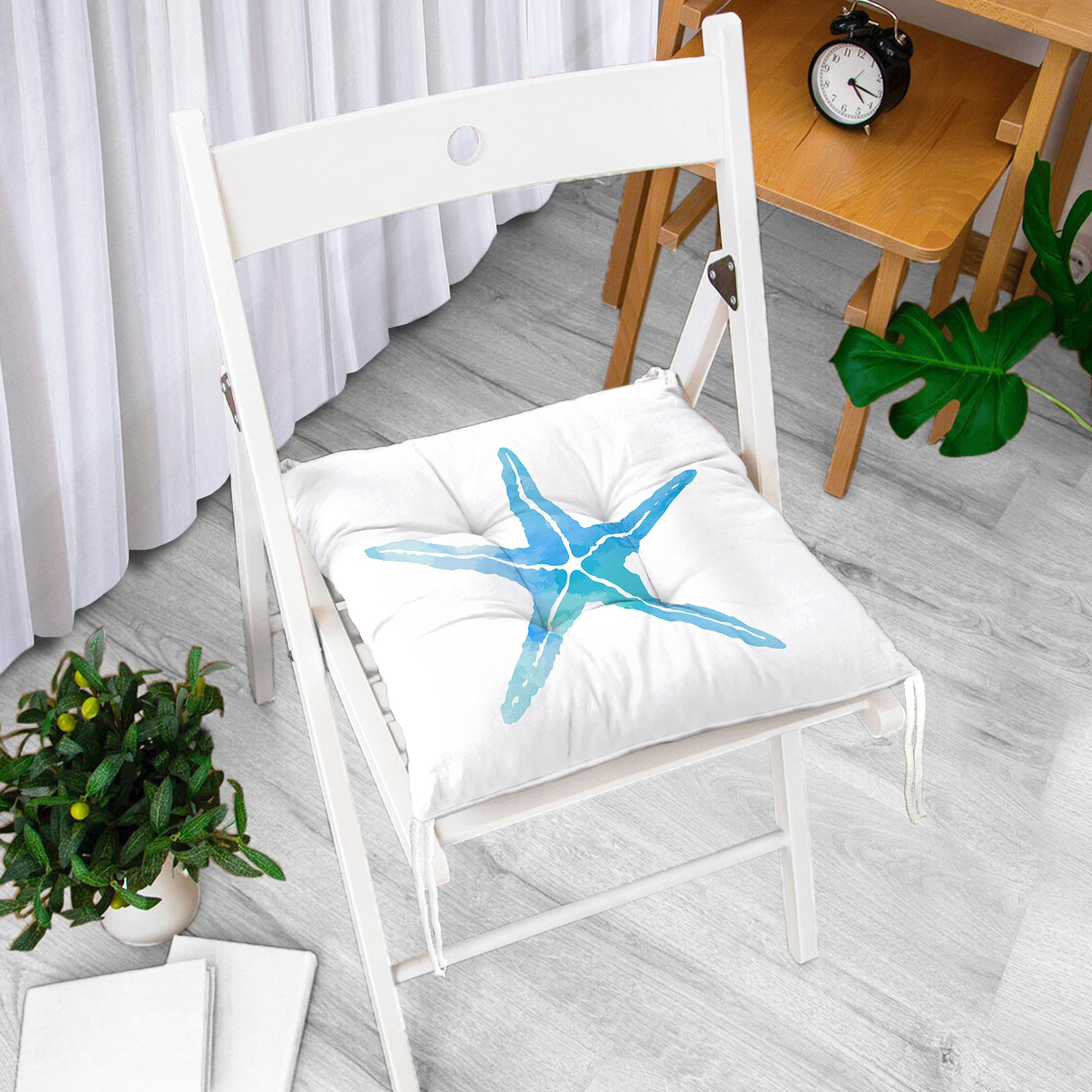 Beyaz Zemin Üzerinde Renkli Deniz Atı Desenli Dijital Baskılı Modern Pofidik Sandalye Minderi