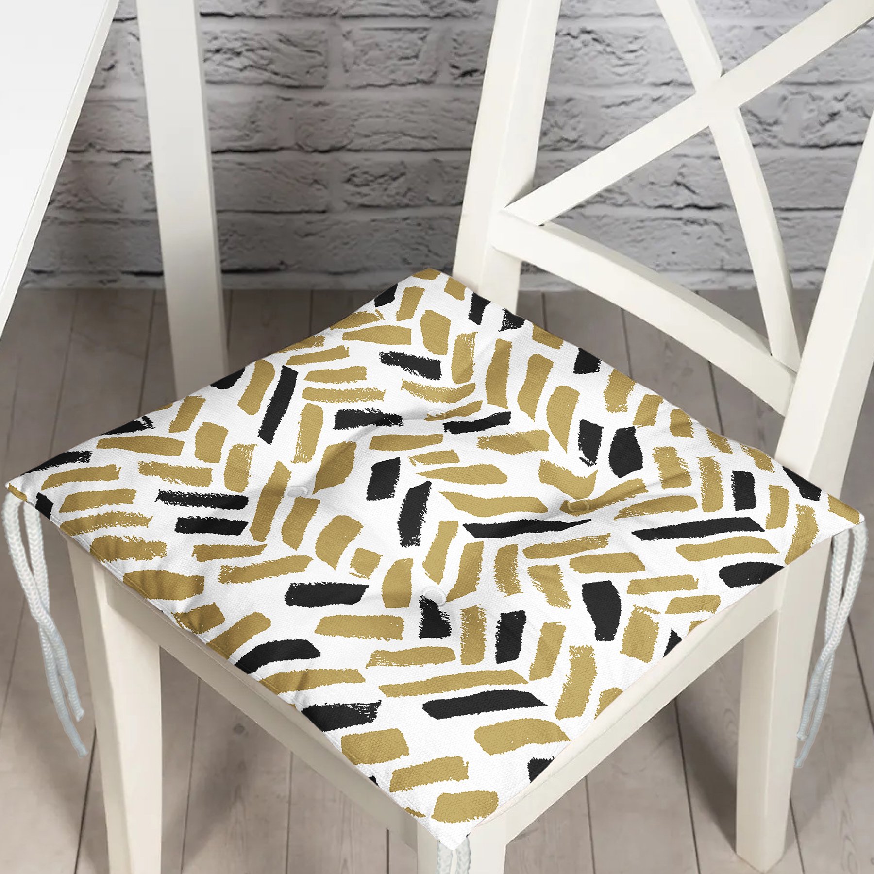 Beyaz Zemin Üzerinde Renkli Geometrik Çizimli Dijital Baskılı Modern Pofidik Sandalye Minderi
