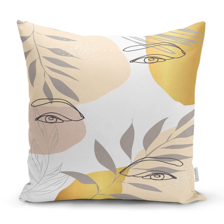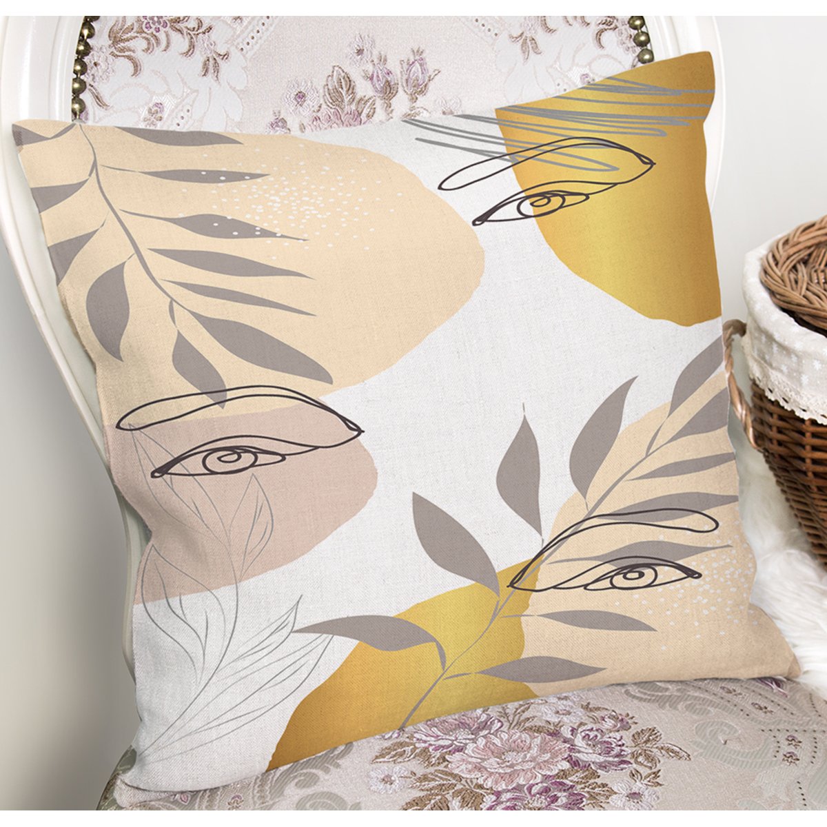 Beyaz Zemin Üzerinde Soyut Renkli Yaprak Desenli Modern Yastık Kırlent Kılıfı