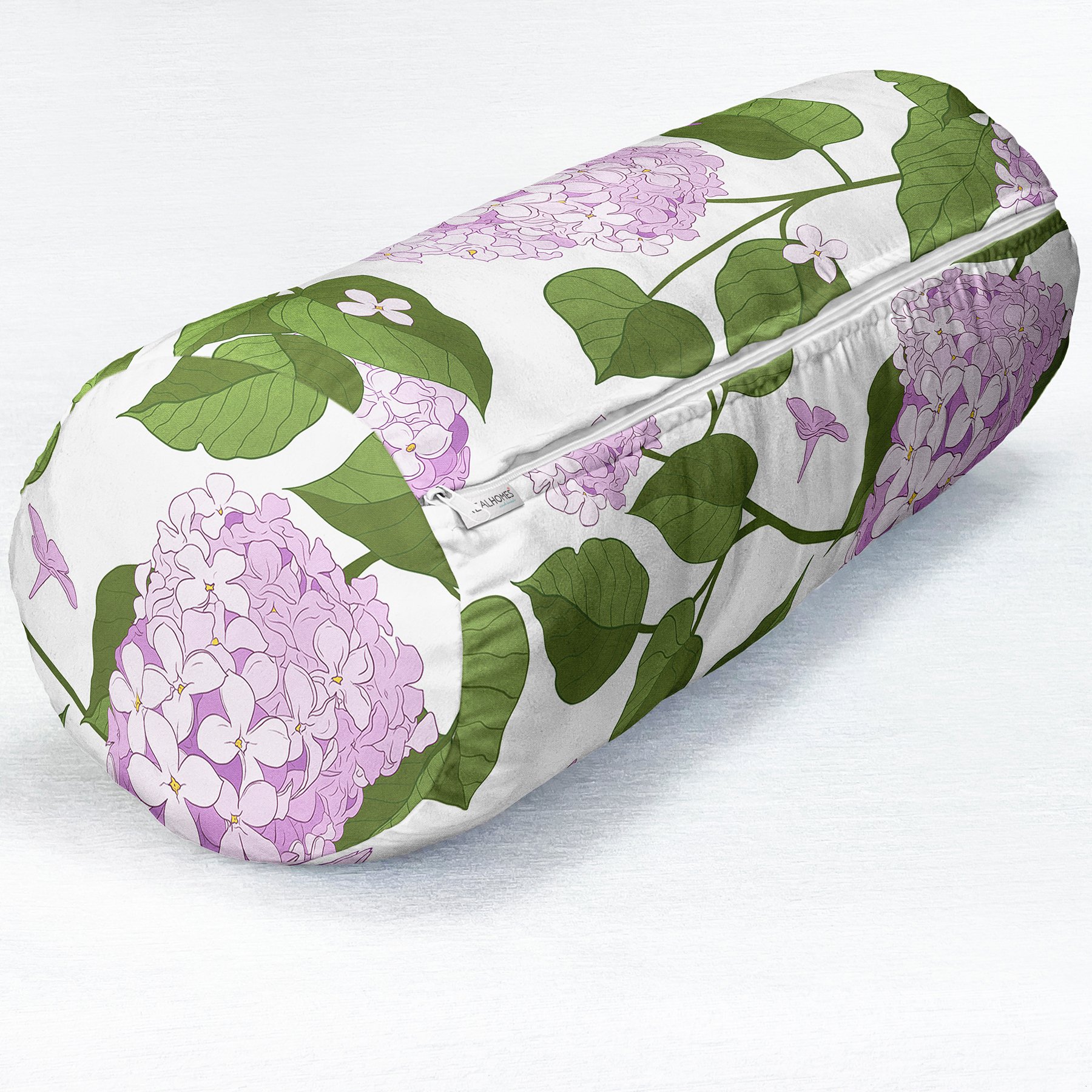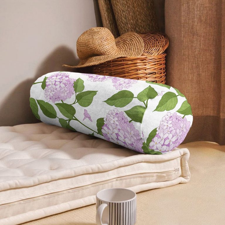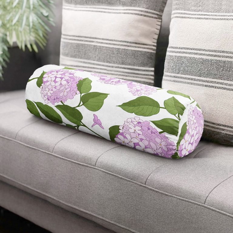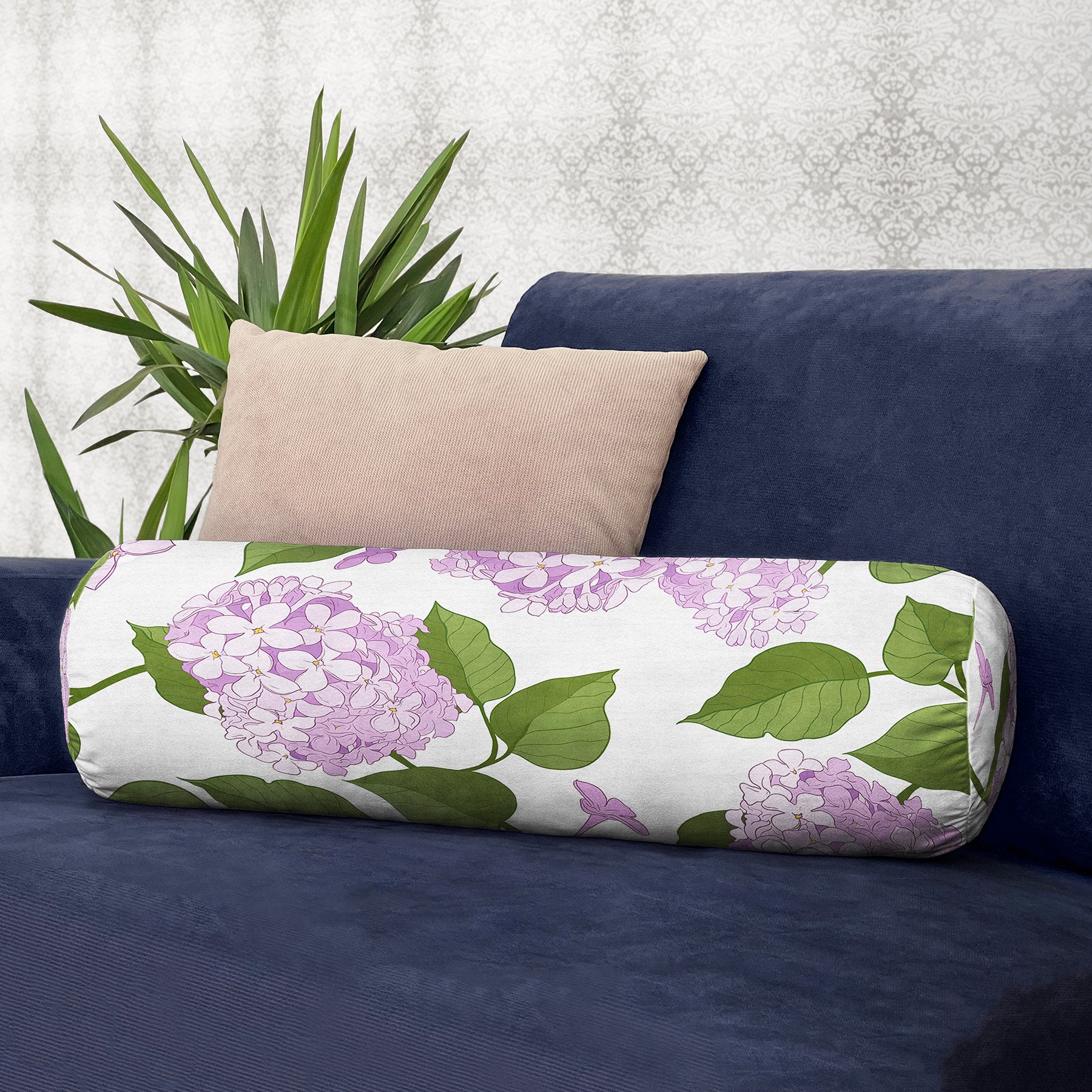 Beyaz Zemin Üzerinde Yeşil Yapraklı Çiçek Desenli Dijital Baskılı Modern İç Dolgulu – Fermuarlı Süet Silindir Rulo Yastık Kırlent