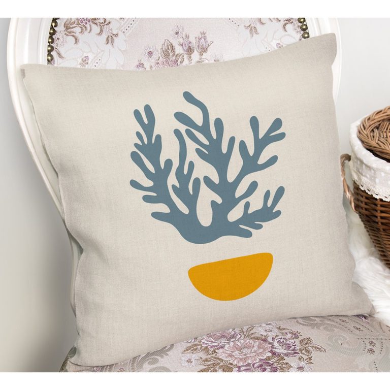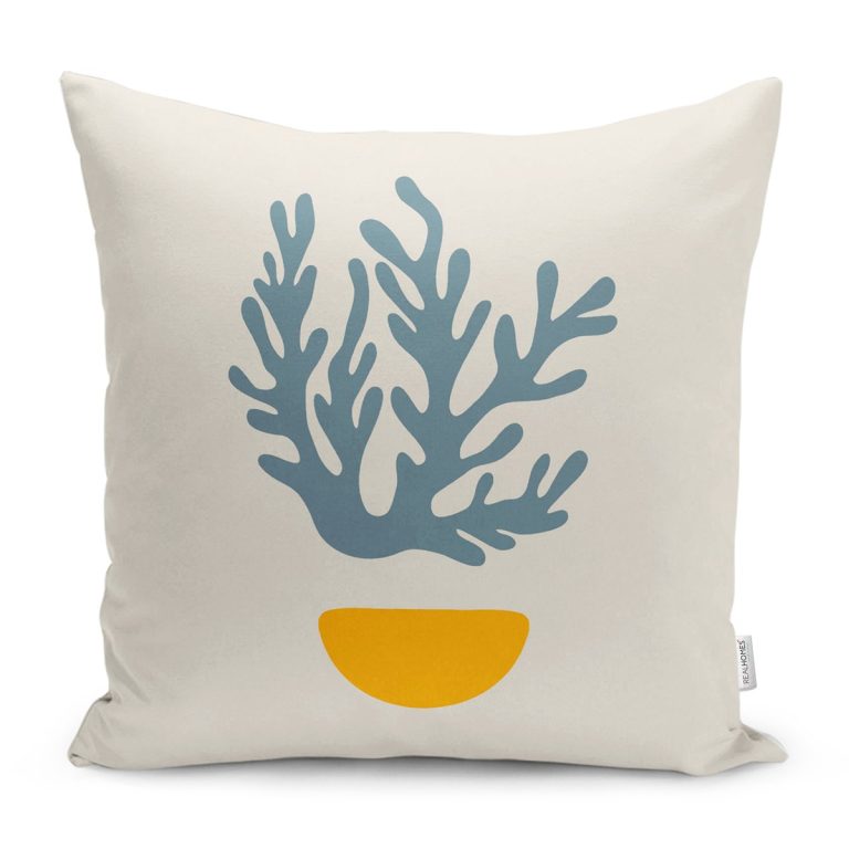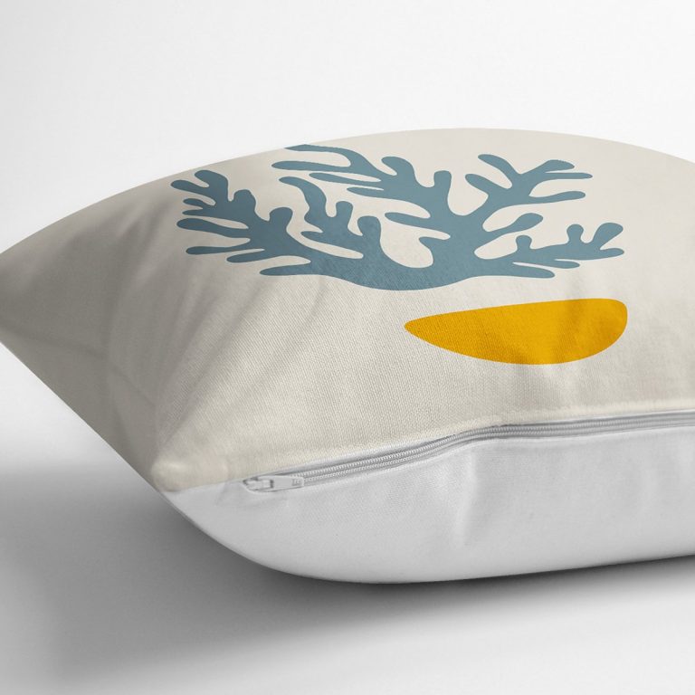 Beyaz Zemin Yosun Motifli Dijital Baskılı Modern Yastık Kırlent Kılıfı