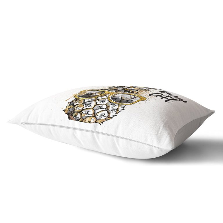Beyaz Zeminde 3D Ananas Özel Tasarımlı Dikdörtgen Yastık Kırlent Kılıfı