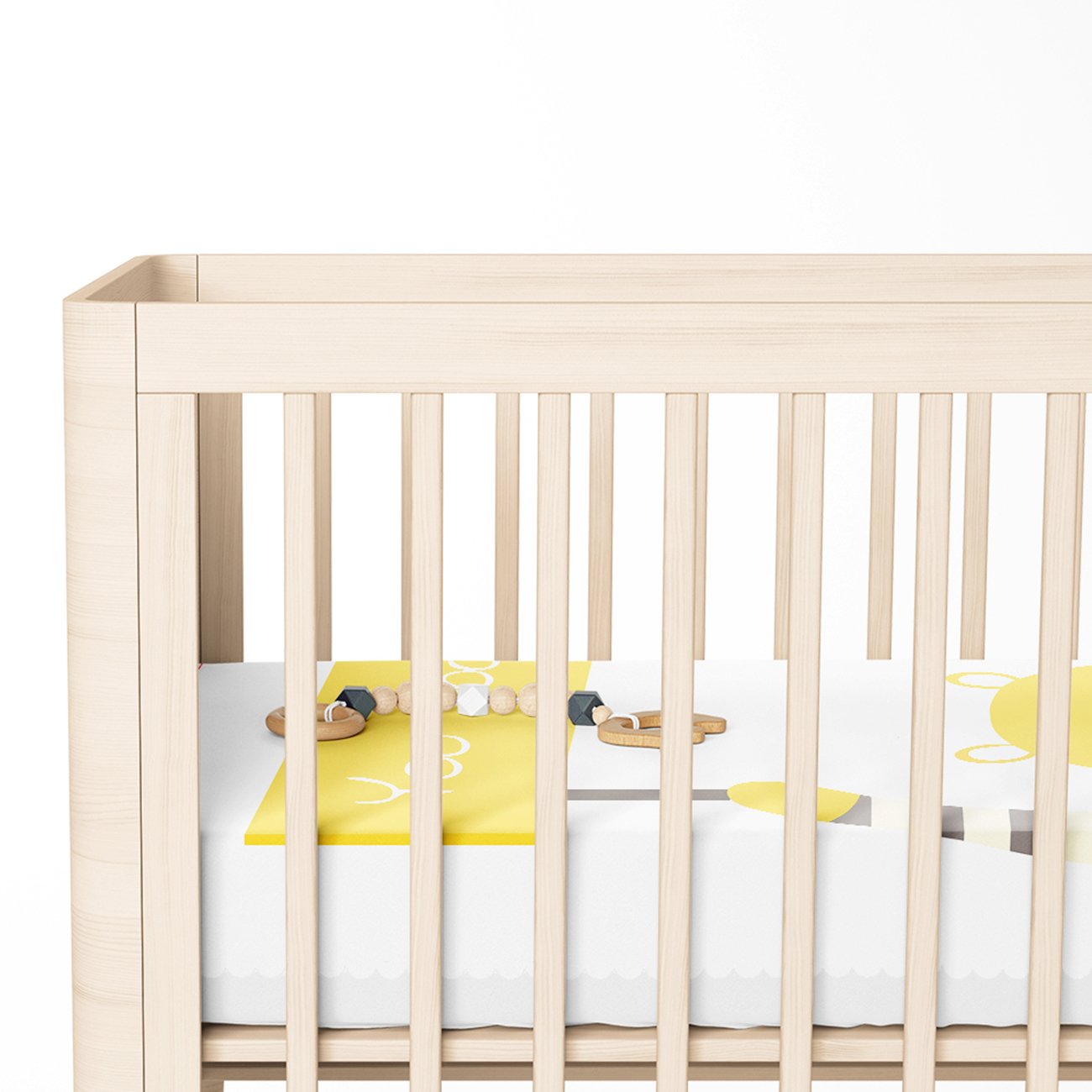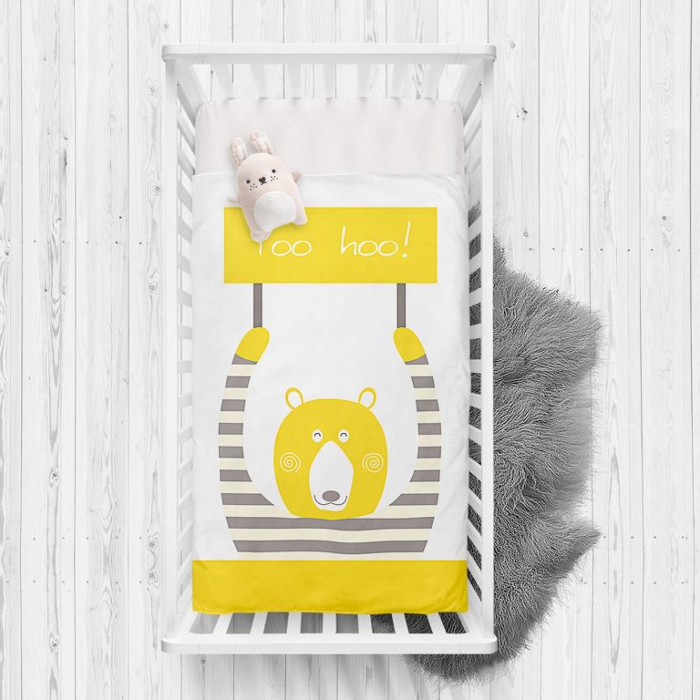 Beyaz Zeminde Ayıcık Motifli Dijital Baskılı Çocuk Odası Yatak Örtüsü