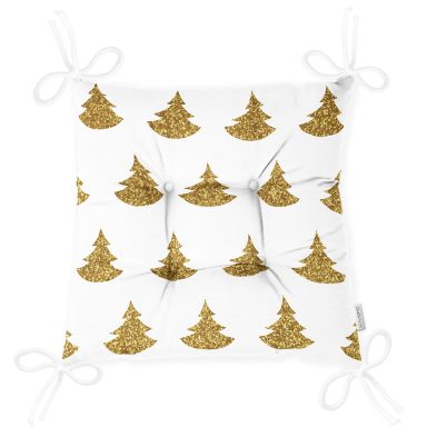 Beyaz Zeminde Gold Renkli Çam Ağacı Desenli Dijital Baskılı Modern Pofidik Sandalye Minderi