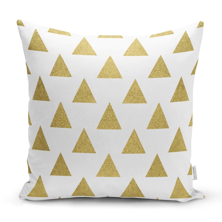 Beyaz Zeminde Gold Ucgen Detaylı Dijital Baskılı Modern Yastık Kırlent Kılıfı
