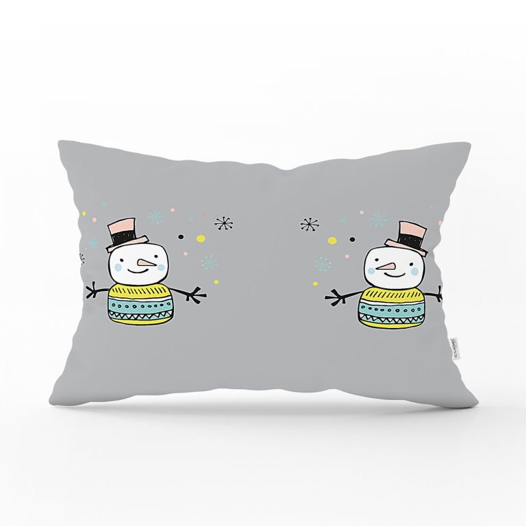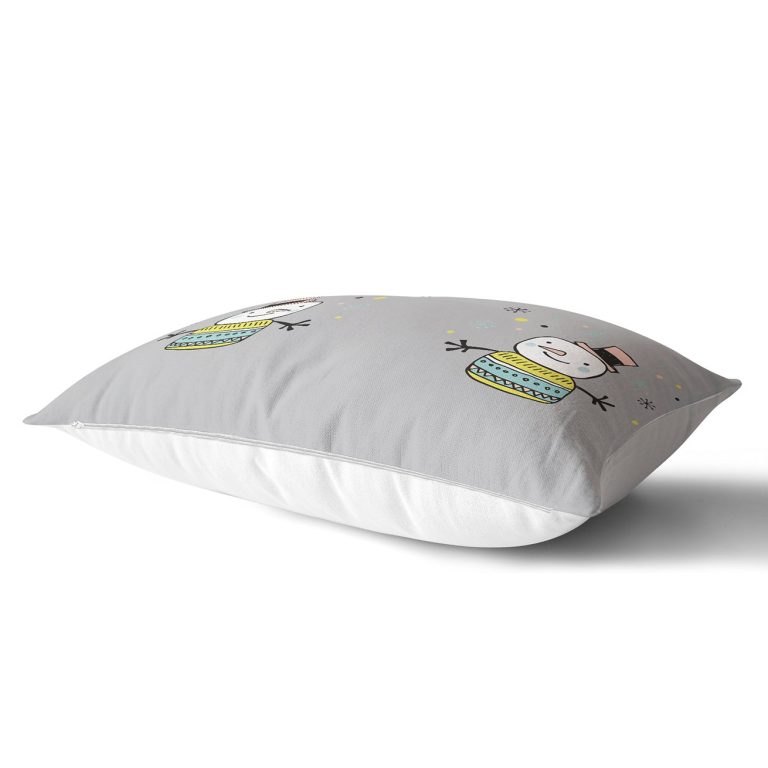 Beyaz Zeminde Kardan adam Çizim Desenli Bebek Odası Dikdörtgen Yastık Kılıfı